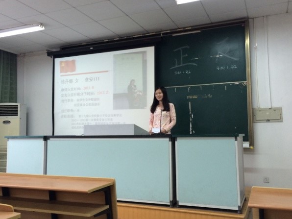 答辩会分个人陈述和现场问答两个环节,9名入党积极分子首先进行3分钟左右的自我论述,包括自我介绍、对党的认识以及入党动机等,此外还有对工作、学习、生活和群众关系等方面的叙述,答辩现场气氛十分活跃。在每位同学陈述完,都会由台下人员针对有关党员作用的发挥、保持先进性等实践层面的问题进行提问。答辩的同学们虽然稍显紧张,但仍然表现良好。为实现锻炼、交流、教育和提升的目的,大部分入党积极分子做到了脱稿陈述,随机答辩,实事求是,其中部分同学还利用PPT更好地展现自我。最后,由所在支部的党员及部分积极入党积极分子代表根据答辩同学们的表现进行投票,唱票人员和公证人员对有效票进行了统计与监督。