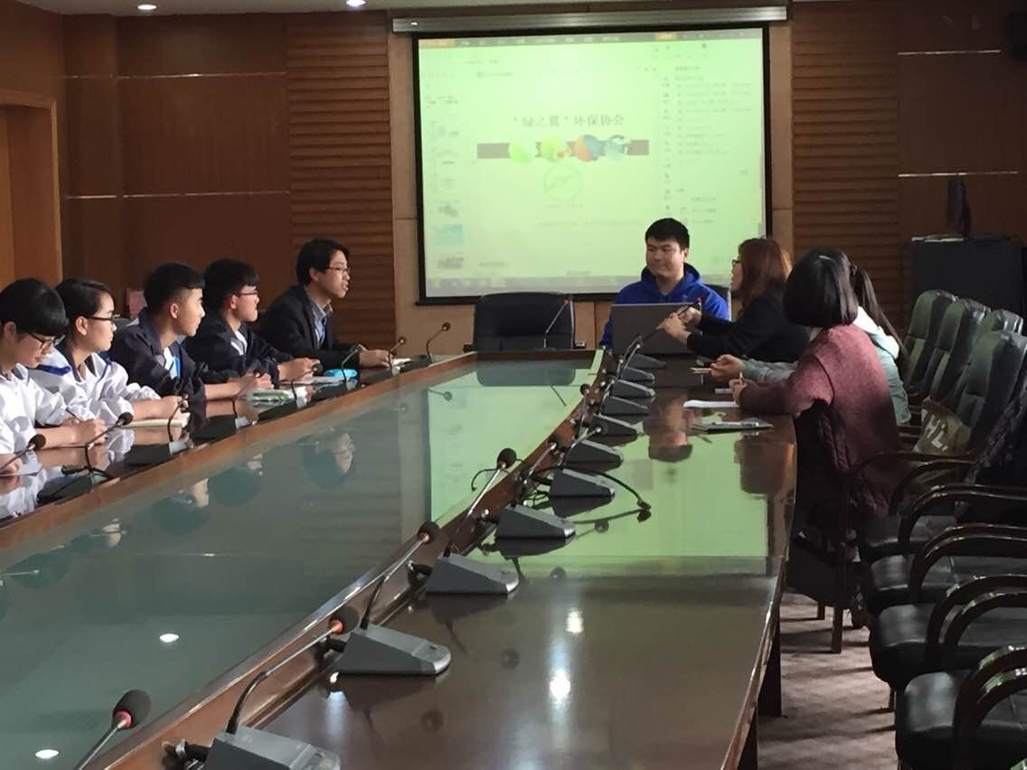 首先,两个协会分别通过PPT介绍了各自学校及社团的概况。余杭中学绿之翼环保社团社长沈同学从社团发展、经费来源、活动举办、提高知名度及环保宣传等五个方面向"绿之翼"环保协会提出了在经营社团时遇到的问题。其后,倪雅老师结合"绿之翼"环保协会举办的各种活动详细回答了对方的问题,并鼓励余杭中学的同学们在兼顾学业的同时,多想些创意金点子,将社团越办越好。接着,双方就大学社团及高中社团的不同之处进行了探讨,并且倪雅老师在讨论期间向余杭中学的同学们宣传了杭师大及生科院的雄厚师资与实力。最后,余杭中学朱老师热烈邀请了"绿之翼"环保协会走进余杭中学,促进双方共同发展。