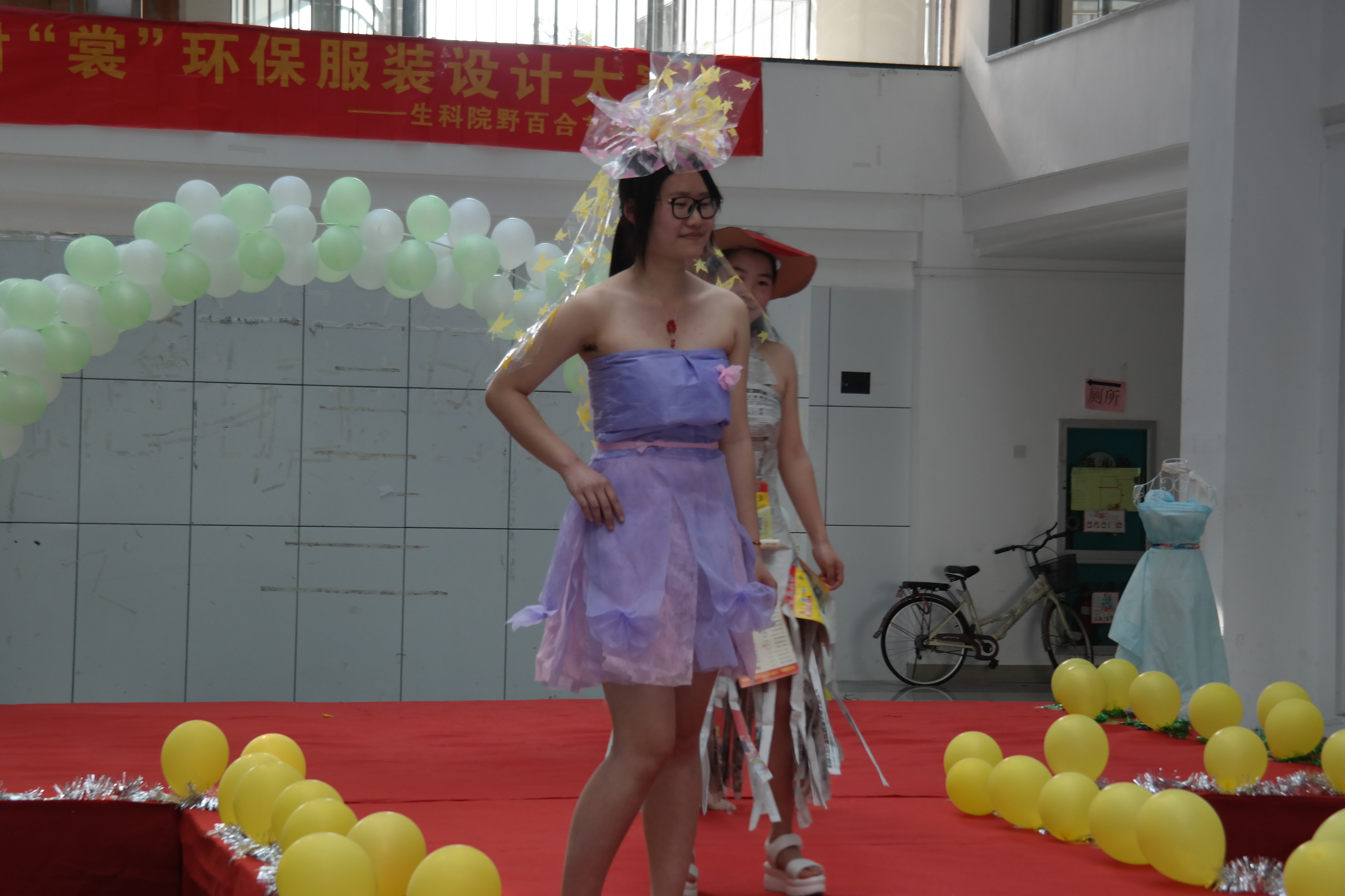本次大赛特邀生科院团学联副主席徐宁,社团中心主任叶小青, "绿之翼"环保协会会长楚单单,团委组织部部长郑杜倩,团委宣传部兼毛巾哥探花主任徐苗作为评委,对本次大赛进行评选及指导。活动伊始,会场里洋溢着欢乐的气氛,参赛选手以饱满的热情和大胆的创意全身心投入到比赛当中。由塑料袋、废旧报纸、蚊帐等各种生活中随处可见的废弃物品制作的精美服装,其设计理念不仅彰显环保主题而且充满时尚感与潮流感,无论是复杂的婚纱,还是简单的个性小礼服,均由参赛人员亲手制作而成。当每组的模特身穿自己队员设计得环保服上台展示成果的时候,台下所有的观众都禁不住为他们的奇思妙想鼓掌欢呼,评委们也由衷地称赞同学们的独具匠心与心灵手巧。其间的抽奖环节也把本次大赛推向了高潮。在一场活力四射的街舞表演后,本次大赛顺利落下帷幕。