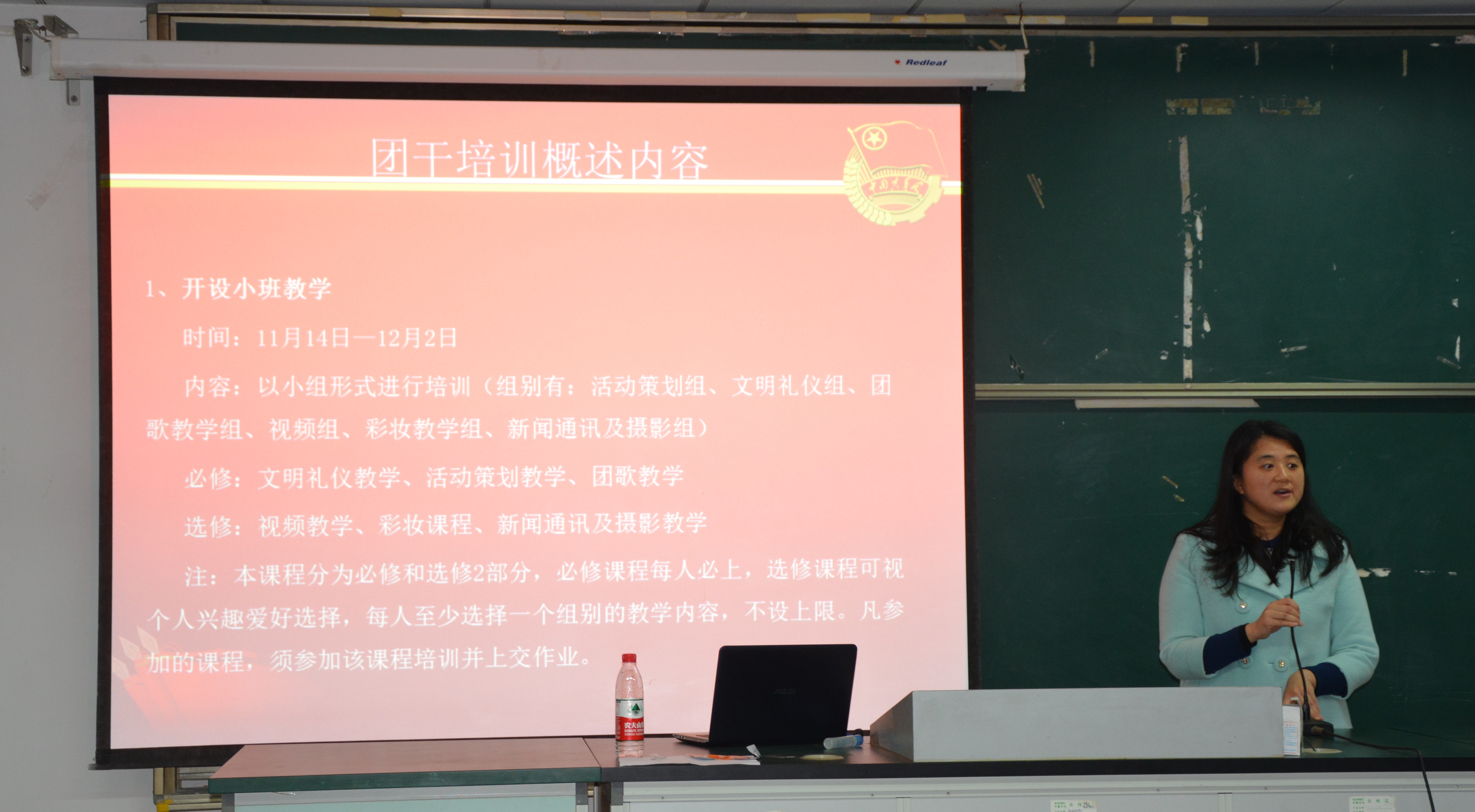 2015年11月11日下午,毛巾哥探花 第十一届团干培训班开班典礼在5号实验楼226教室成功举办。出席本次开班典礼的有院学工办主任程心皓老师,团委书记陈好老师,团委副书记吕京京老师以及院团学联主席团。此次典礼由团委组织部干事黄依琳主持。