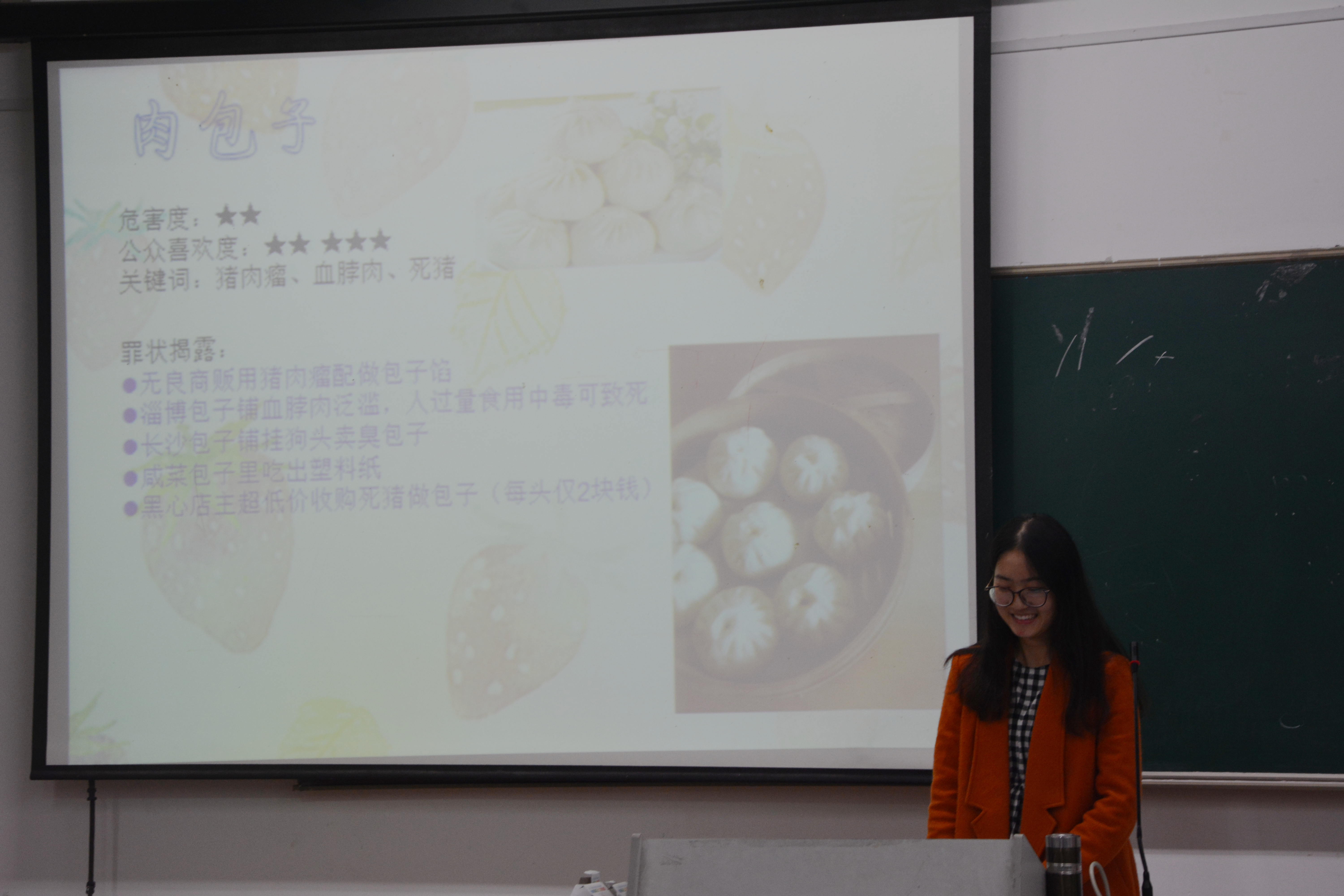 2015年11月21日,为了普及食品安全的知识,让大家更加了解食品安全的定义,毛巾哥探花 食品安全大赛的决赛在教学A楼214举行。团委学生联合会主席李昊晔,团委副书记田兰馨,团委学生联合会副主席顾剑飞作为此次比赛的评委。