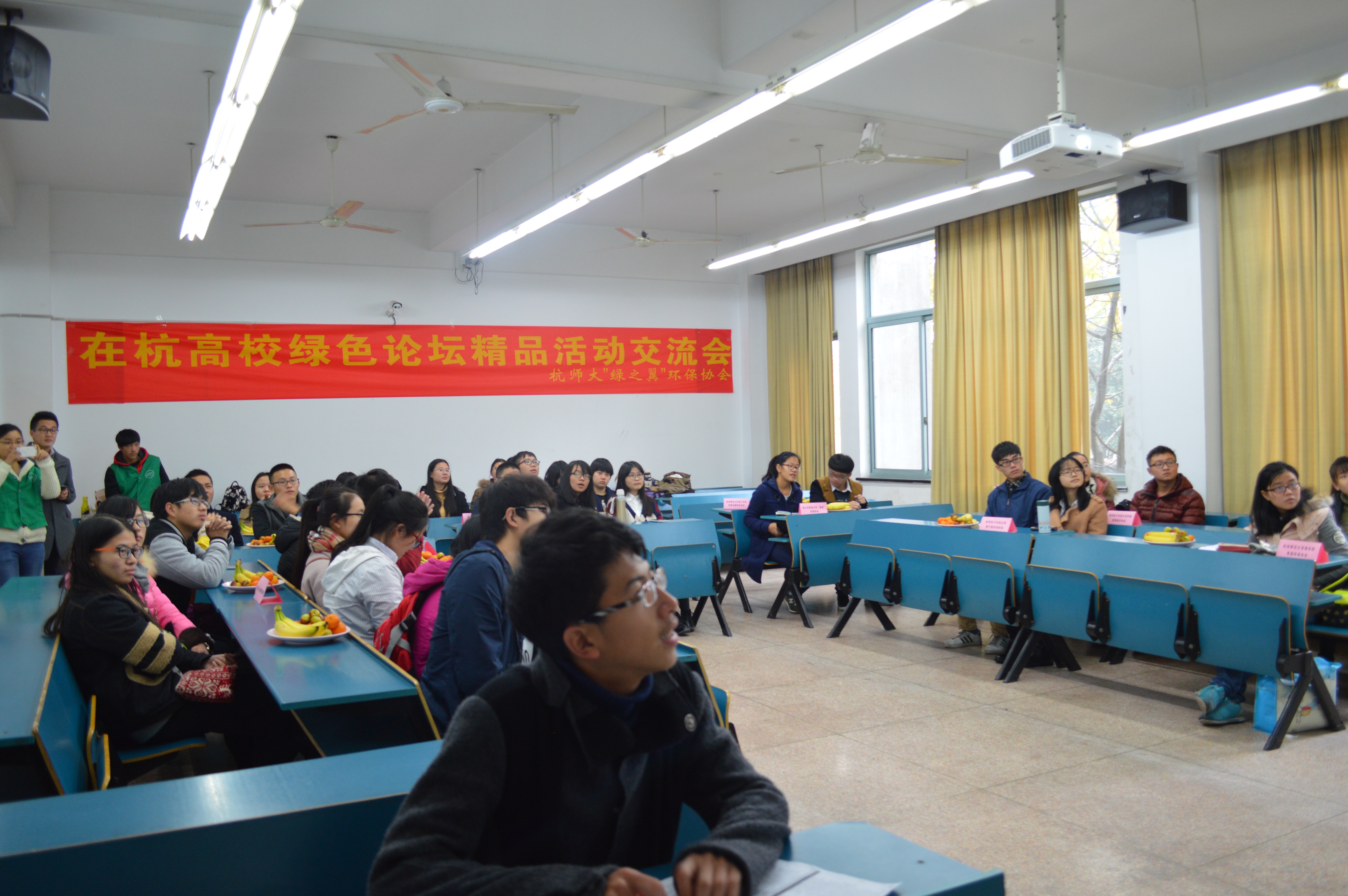 2015年11月29日下午,由杭师大"绿之翼"环保协会主办的在杭高校绿色论坛精品活动交流会在教学B楼110室拉开了帷幕。