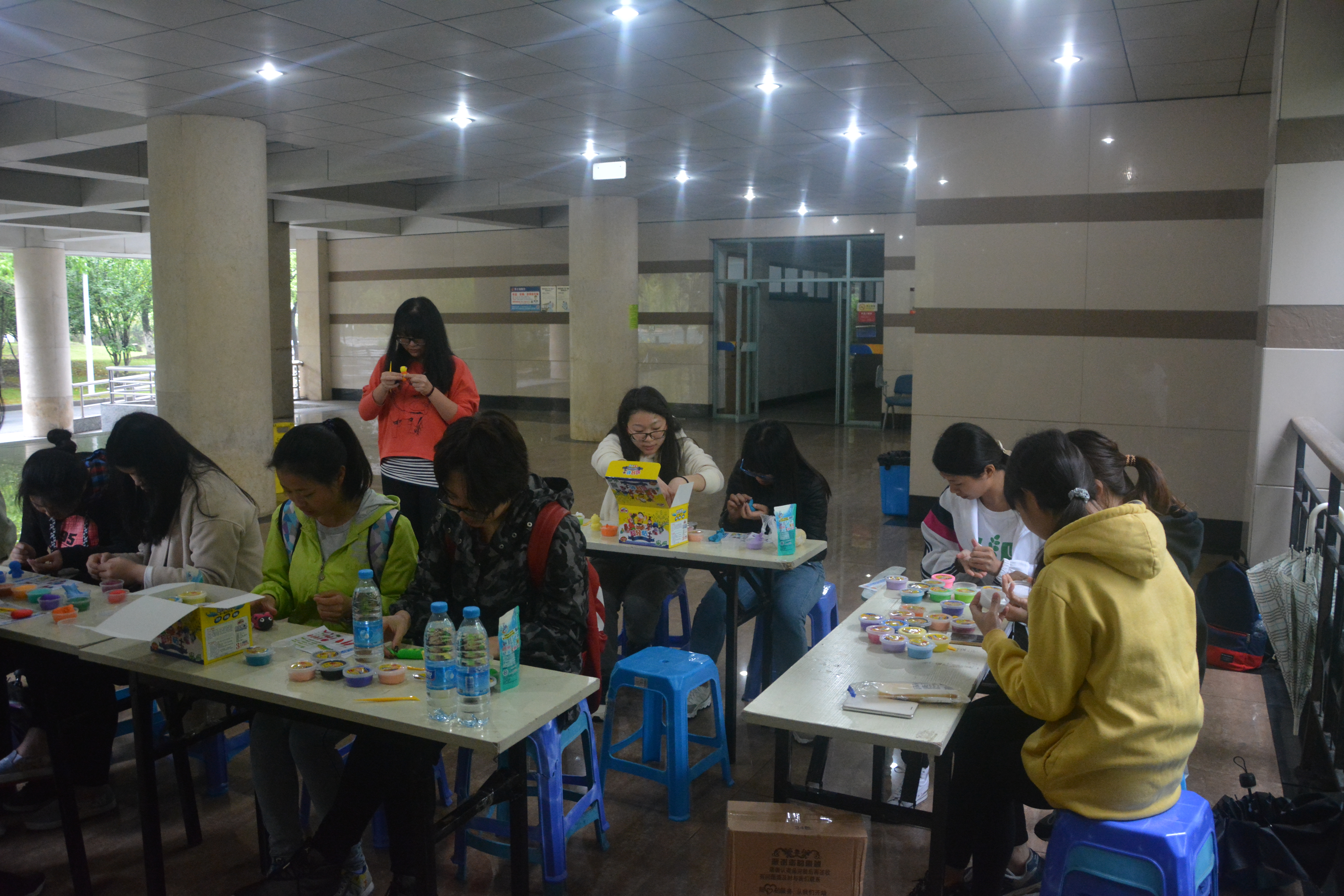 活动进行伊始,便有许多大一同学前来参与,以环保橡皮泥——太空泥为原料,根据书本上的图案或是自己构思捏出一个又一个精巧的东西,有弯着长鼻子头顶小黄花的大象,也有粉嫩的蘑菇,还有像豆子一样的毛毛虫,特别可爱地恍然出现在大家的眼前,工作小干事们纷纷将其拍照登记作为接下来评奖的作品。