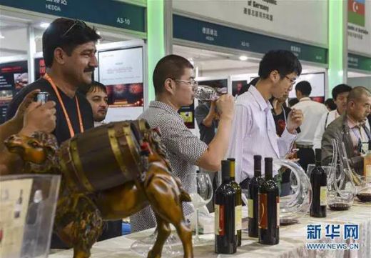 在第三届中国—亚欧博览会上,参观者在格鲁吉亚展区品尝红酒(2013年9月3日摄)。