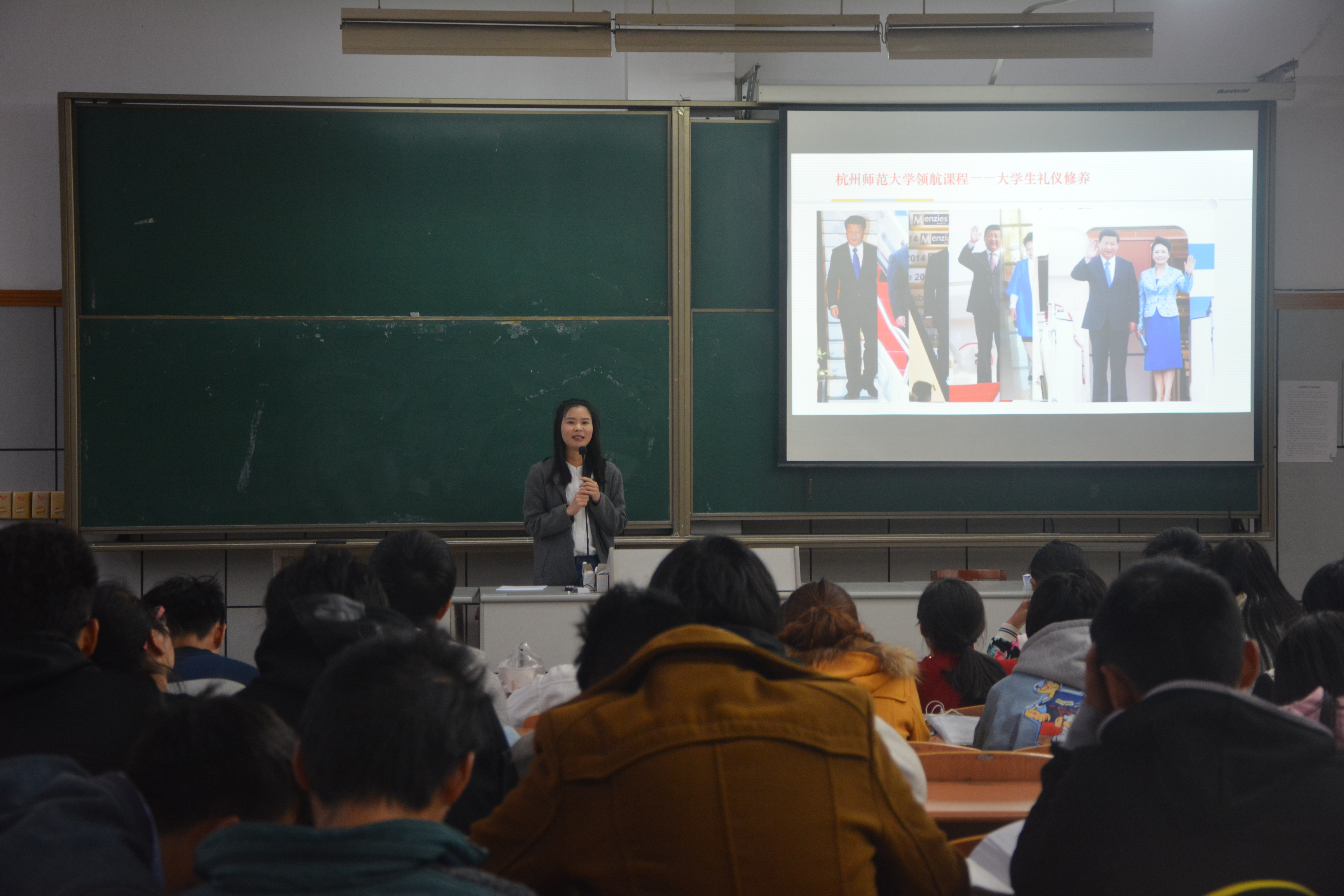 2016年11月9日下午14:00,毛巾哥探花 新生始业教育在B220进行,这次的主题是大学生礼仪修养,由生科院团委书记陈好主讲。