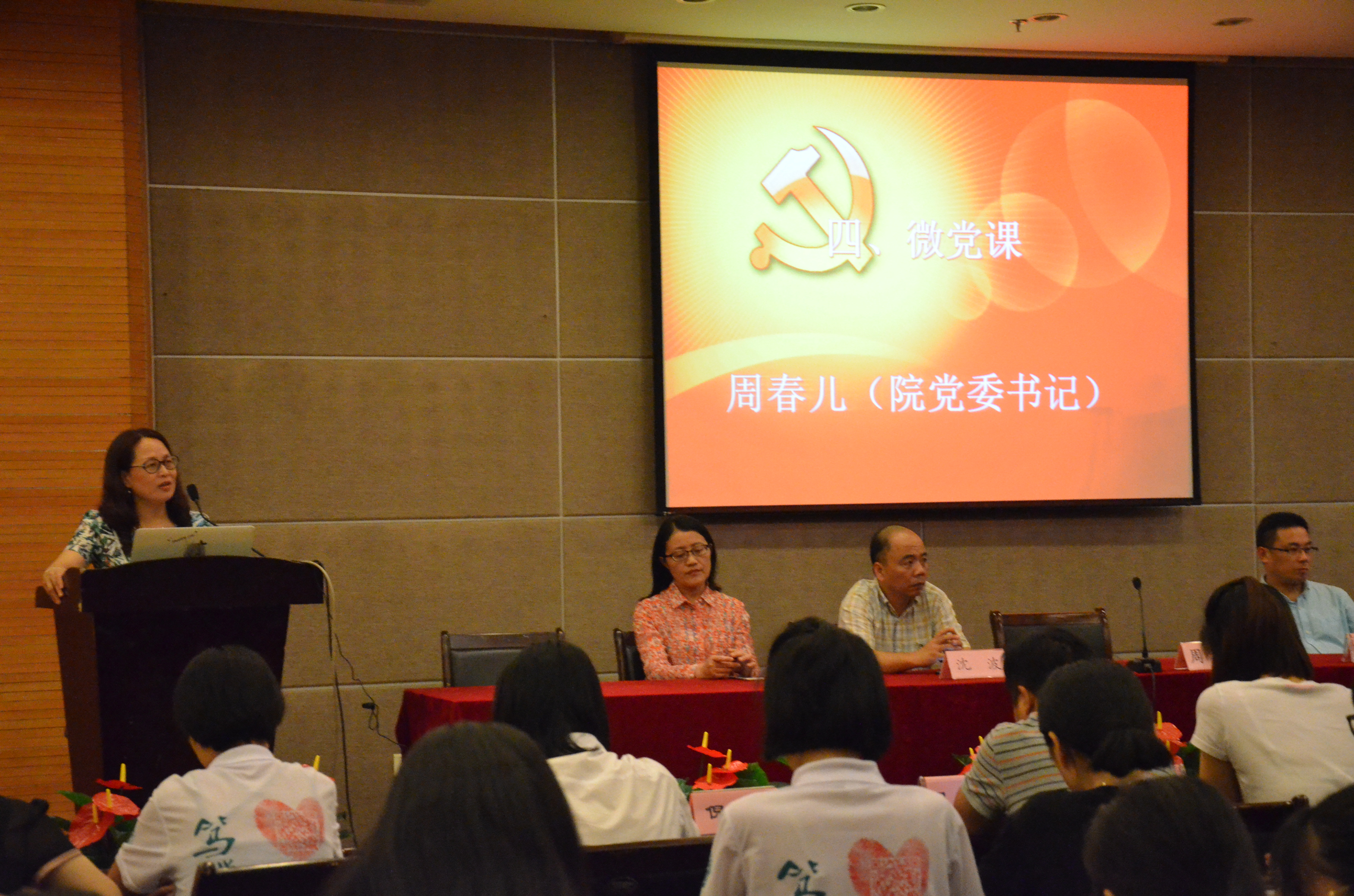 随后,党委书记周春儿为毕业生党员们上了在杭师大的最后一堂党课。她简要的讲述以下几点:首先,她向毕业生们表示祝贺,当代的大学生,在座的所有人,有很好的硬件和软件设施学习环境,相比从前大家是幸运的,可不管在当时她身处的艰苦年代,还是现在的幸福年代,大学生活仍然是人生中最值得回忆的时代。同时,她代表生科院党委向大家提出了几点要求。第一,希望在座的各位,不忘初心,坚定理想意识,增强党员意识,永远记得自己是一名党员,永远记得自己当初入党时许下的誓言,不要被物质世界的诱惑,冲淡了自己的理想信念。第二希望大家坚持学习,终身学习,不断提高综合素质,保持先进性。身为党员,是先进性的代表。在未来的社会,大家会面对非常多的竞争,而面对竞争的时候,希望在座的各位,可以始终保持一个积极的心态、良好的态度,相比能力,有时态度反而更重要,往往态度才是取胜的关键。而对于能力,大学阶段所习得的知识是远远不够的,所以也需要大家不断地去学习,不断的去完善自我。再者是,对待工作、对待事物的情感也是未来党员生活中不可或缺的重要部分,你们对于父母的情感,对于朋友的情感,对于工作的情感,决定了你是快乐的工作还是苦闷的工作,这将会影响你在工作、生活中取得什么样的成果。周春儿书记还希望大家在未来人生的道路上做一名清正廉洁、光明磊落的党员,心中永远装着群众,做到全心全意为人民服务,起好模范带头作用,永远记得自己是一名光荣的共产党员。最后,倪雅老师对党组织转接的注意事项进行了说明。
