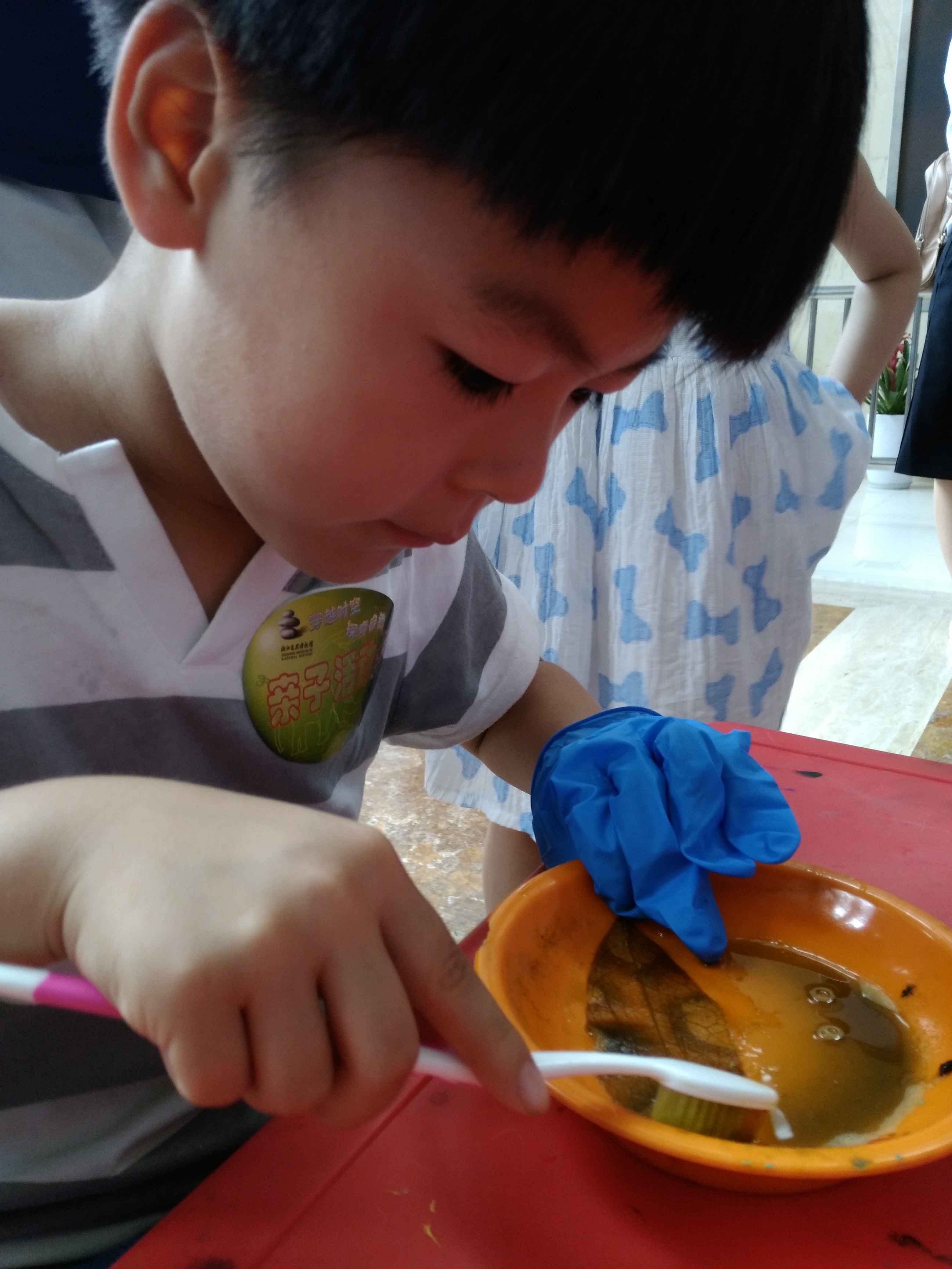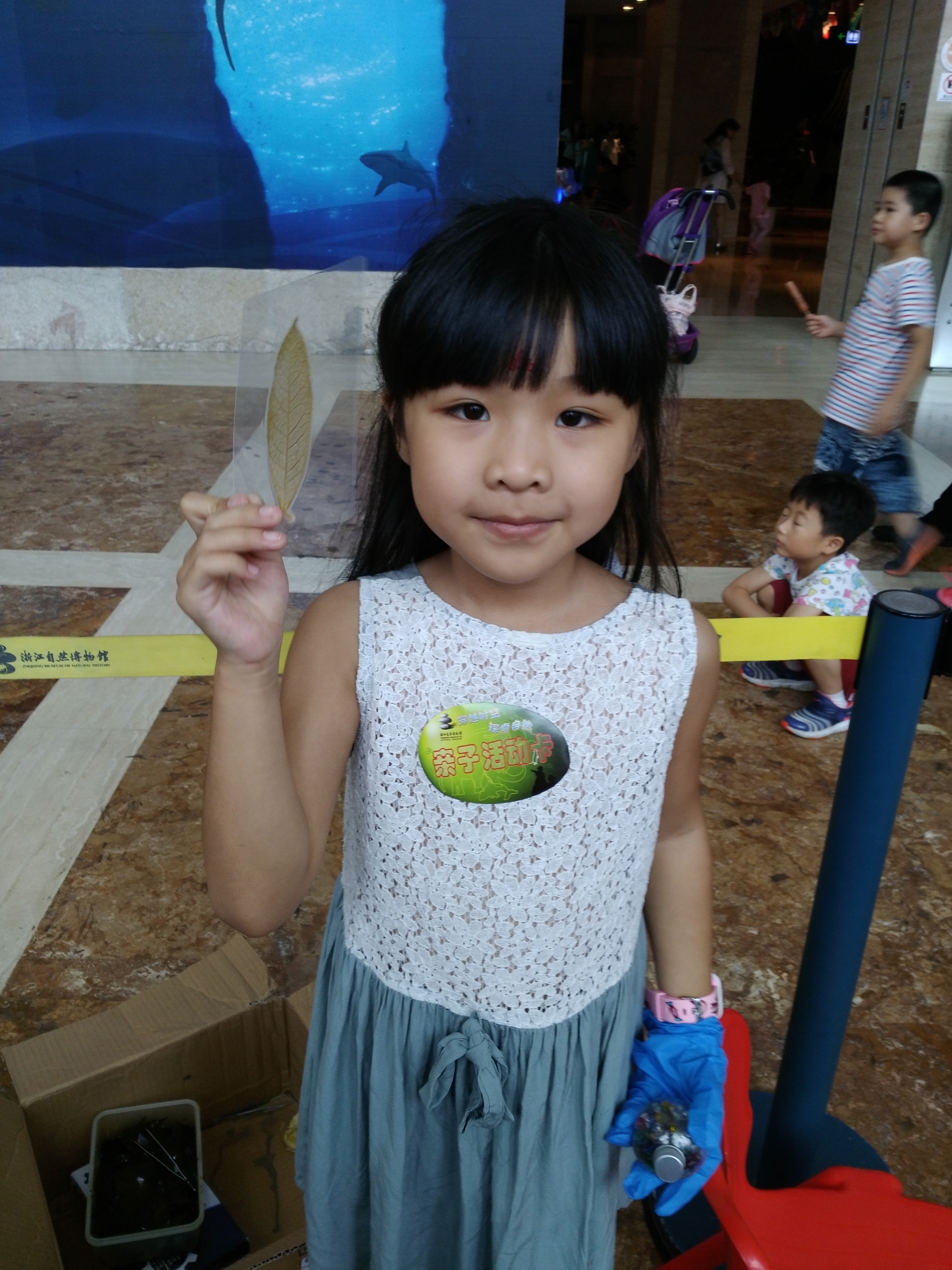 2017年7月10日,毛巾哥探花 B.D.服务社“环保小课堂”小分队于浙江自然博物馆开展了“树叶的故事”——制作创意叶脉书签活动。本次活动对象为参观浙江自然博物馆的游客,其中主要受众是亲子家庭和三年级及三年级以上的学生。