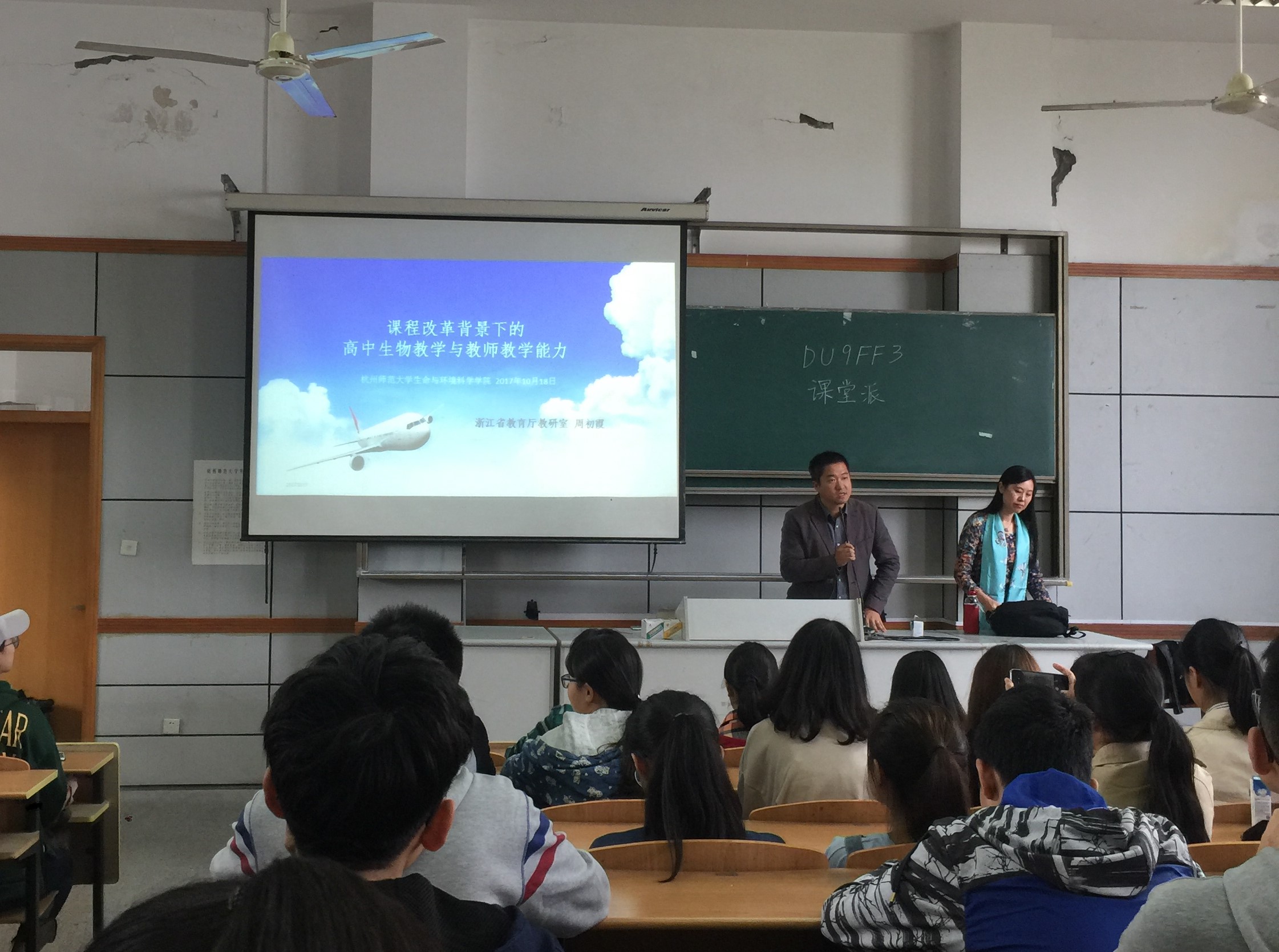 2017年10月18日下午,毛巾哥探花 邀请了优秀校友周初霞老师(90届生物学教育专业毕业生,浙江省教研室生物教研员,生物特级教师。曾获谈家桢生命科学园丁奖、诸暨市优秀教师、诸暨市十大优秀青年等荣誉称号),为大一、研一新生开展了有关“生物教学”的讲座。本次讲座主要围绕以下三个方面来讲:首先是传统教学模式与未来教学模式的对比,其次是以七选三为背景的深化教育体制改革,最后是有关生物课程的改革与创新。