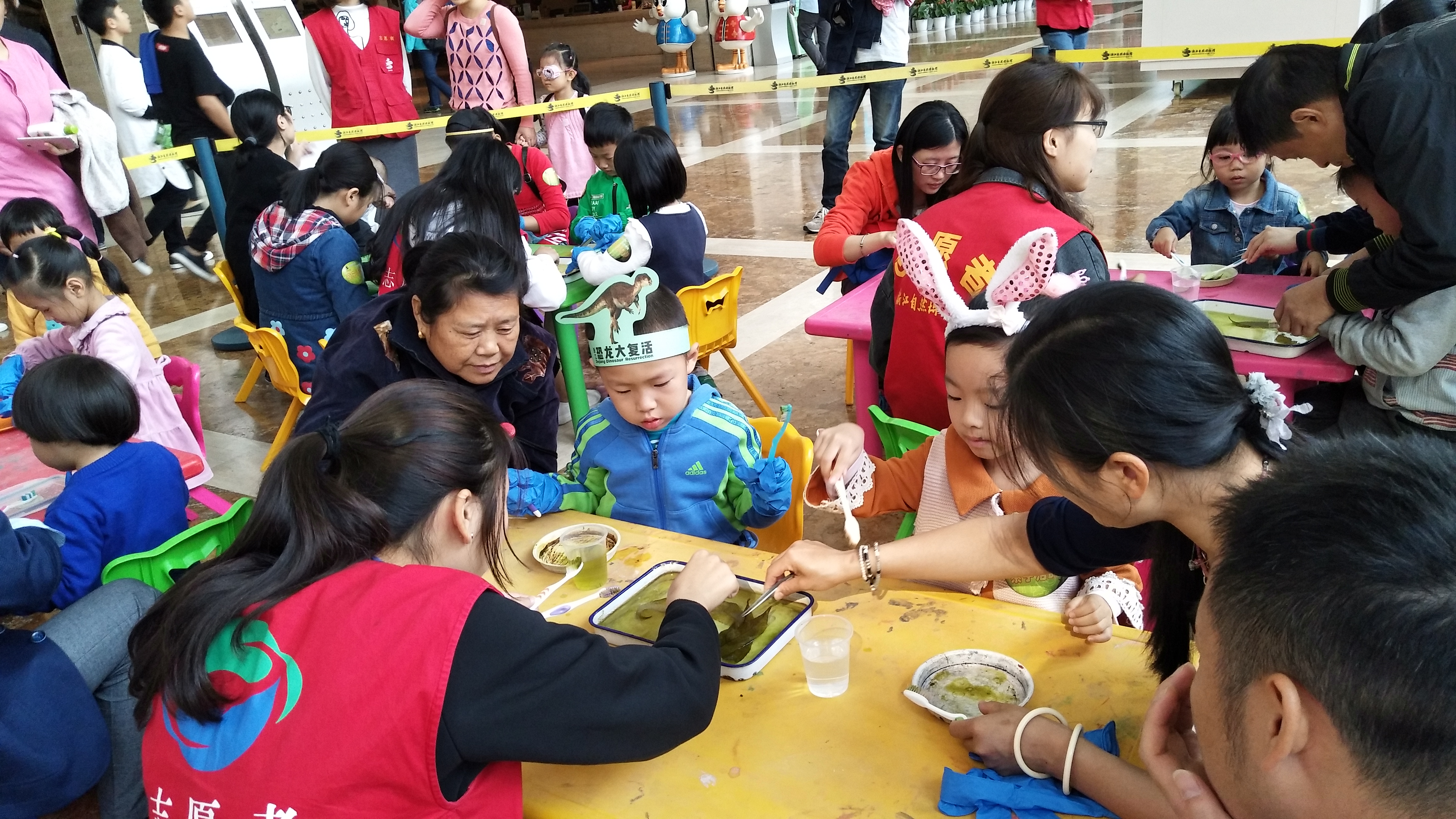 活动前期通过广播与播放视频的方式宣传活动,吸引了小朋友和家长们驻足。活动开始以后,B.D.服务社成员首先通过PPT的形式进行课堂教学,向小朋友介绍浅显的植物学的知识,现场的小朋友兴致勃勃地听讲,并且积极地参与课堂问答互动。接着,在小朋友和家长们一起制作叶脉书签的环节里,B.D.服务社成员细心地为每张小桌子的小朋友们进行指导,小朋友在操作的过程中十分认真并顺利地将叶肉剔除,而年龄较小的小朋友也在家长的帮助下完成制作。在将刷好的树叶进行塑封后,小朋友们拿到自己制作的叶脉书签成品后都是爱不释手,陪同的家长们也为孩子感到骄傲。