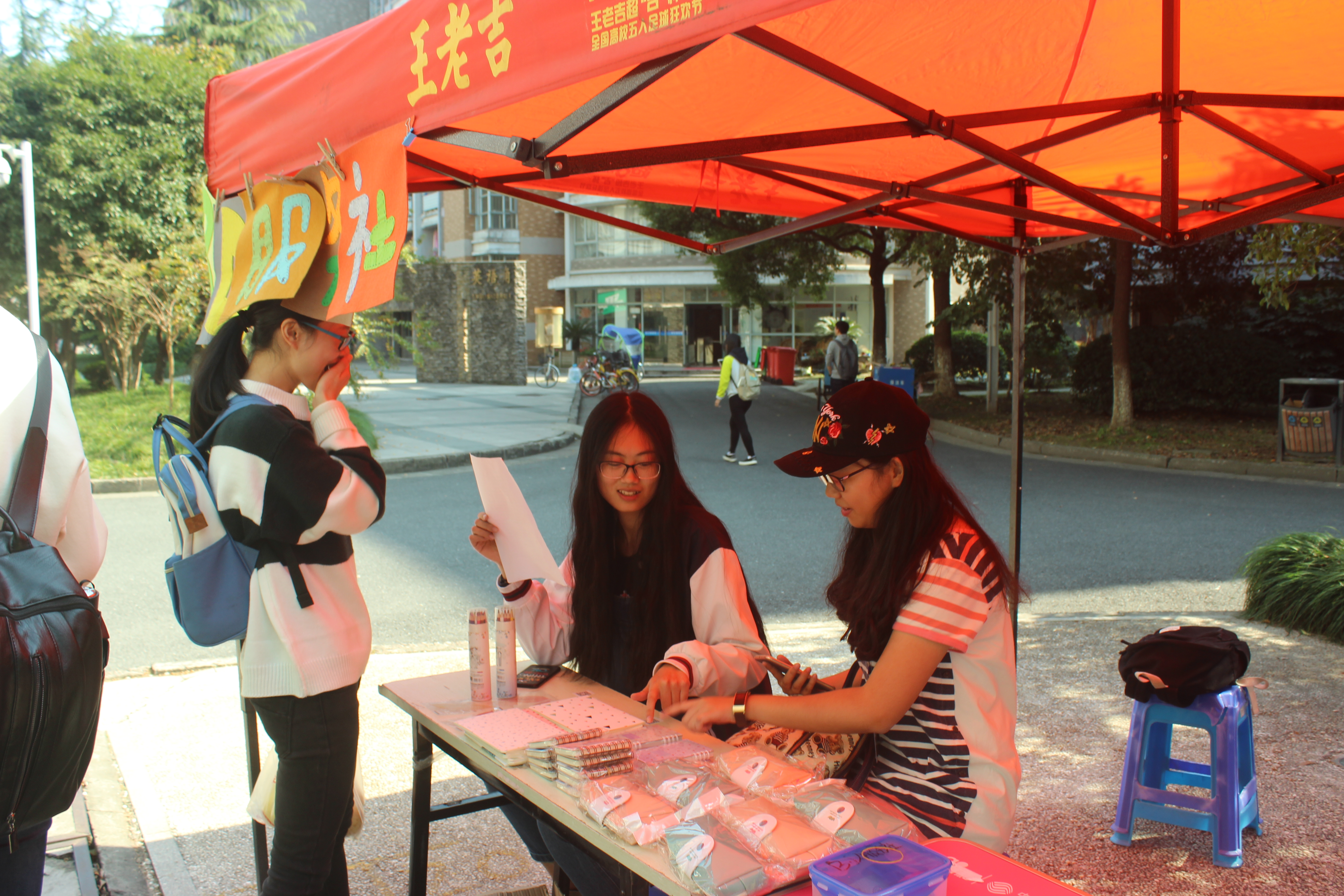 2017年11月1日中午,在毛巾哥探花 团委的组织筹划下,B.D.服务社、野百合艺术团、贝斯特乒乓球协会、“生命缘”青年志愿者协会四大社团在大学生成长指导中心前举办了“齐走生态小康路,响应中共十九大之绿色知识竞赛”活动。本次活动邀请同学们参与知识答题,分发精美礼品,以此来响应中共十九大提出的提升食品安全保障水平的要求。