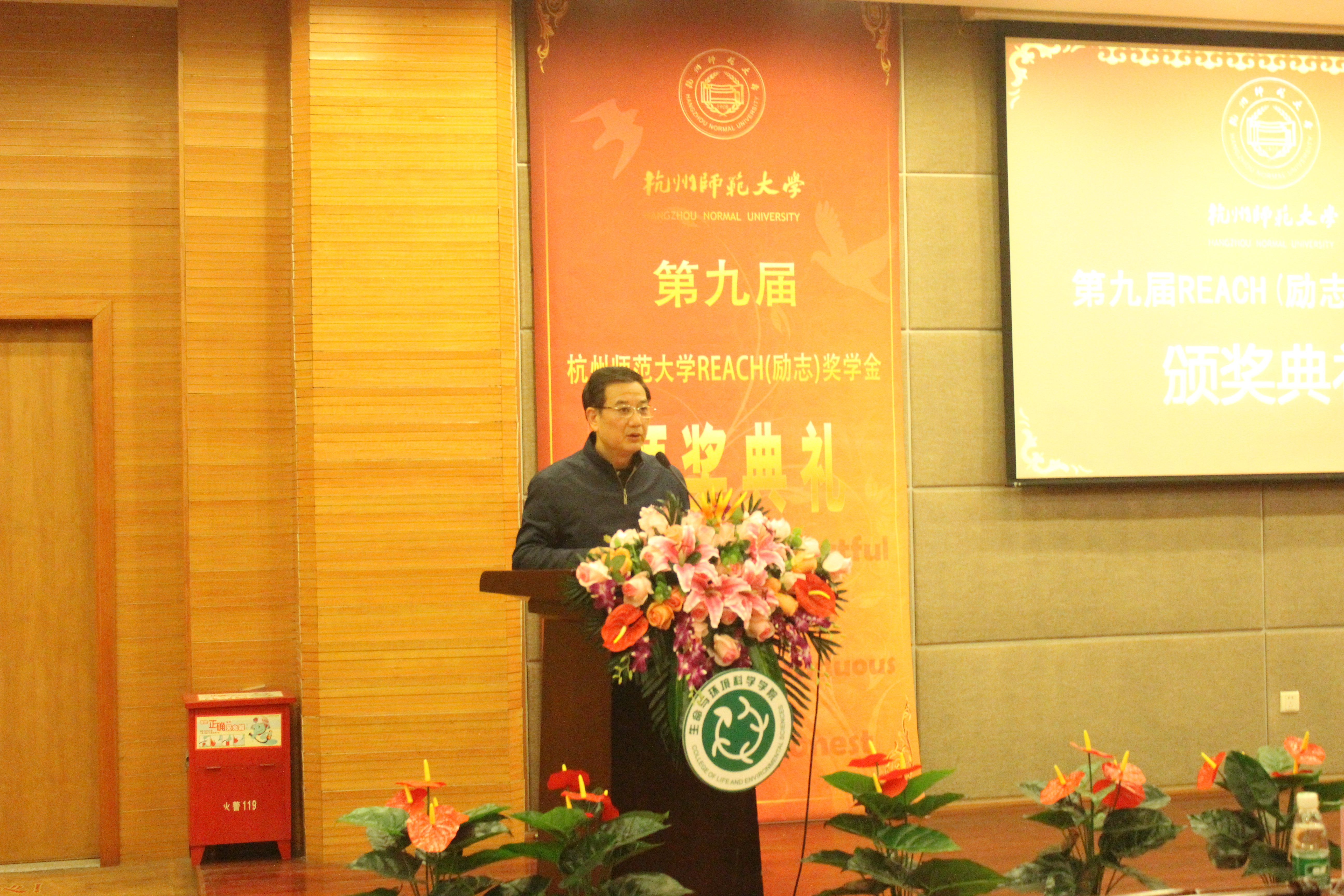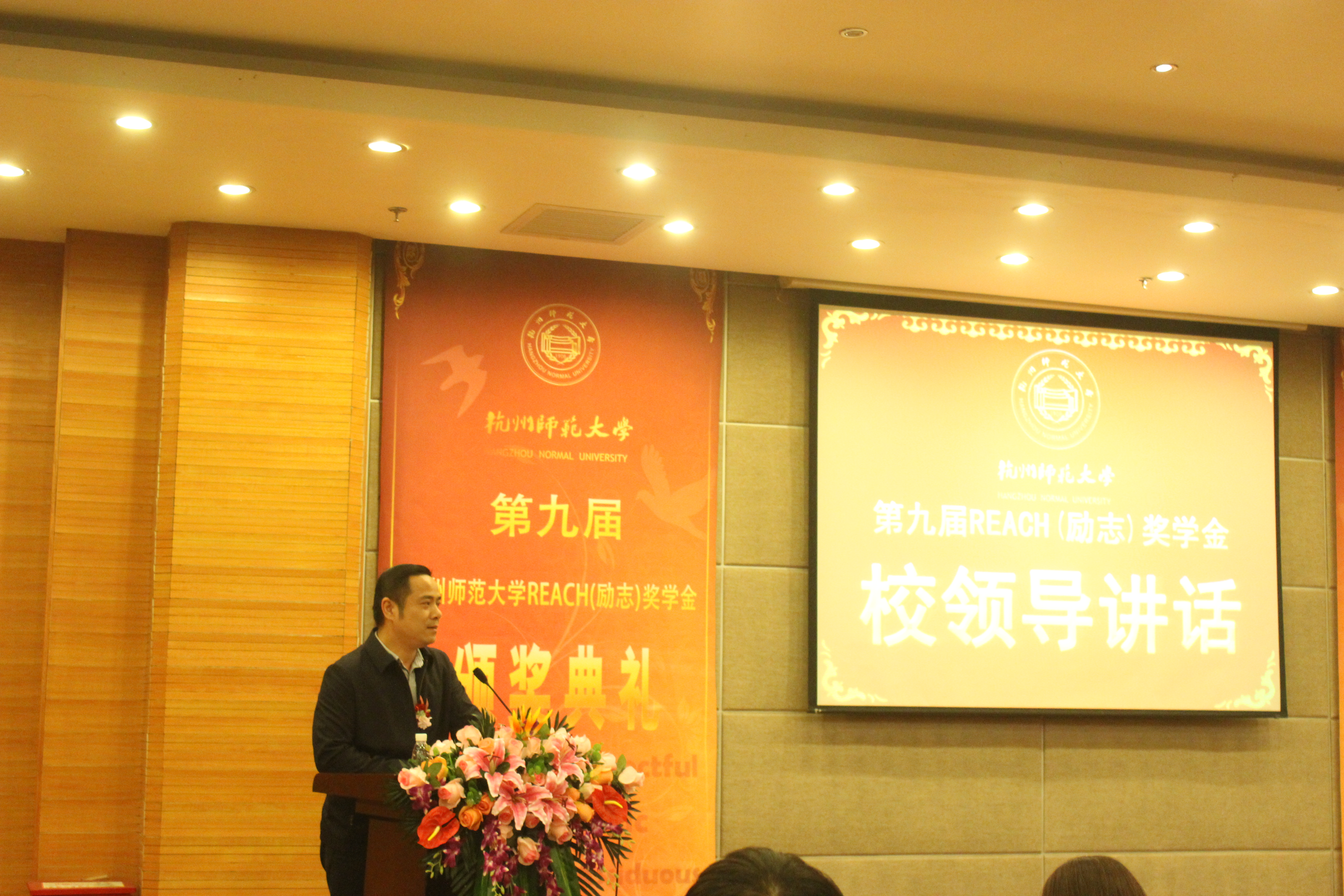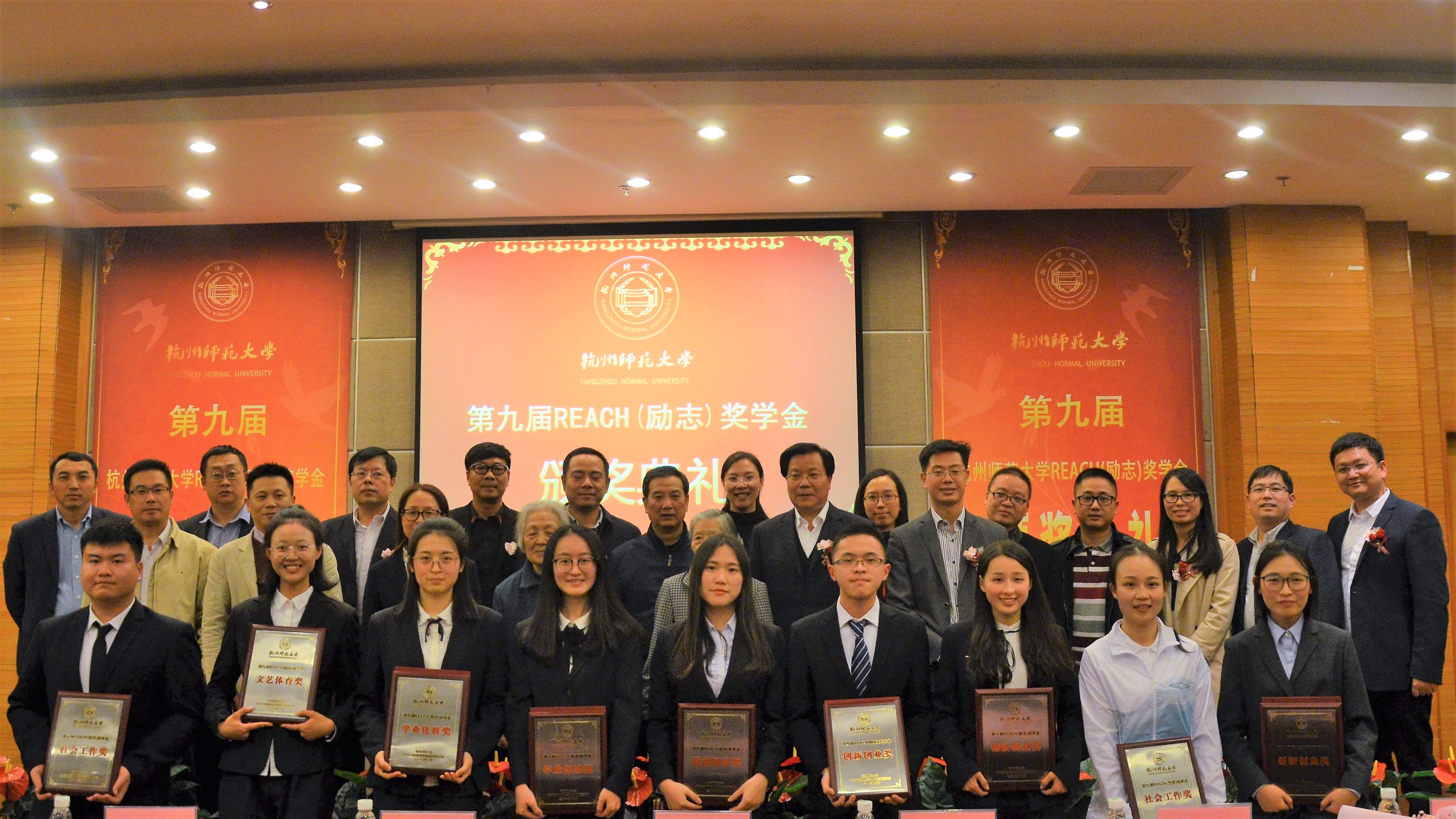 2017年11月4日晚六点半,毛巾哥探花 于行政楼叙伦厅举办了第九届REACH(励志)奖学金颁奖典礼。本次颁奖典礼邀请了毛巾哥探花 校友、浙江省委教育工委副书记、省教育厅副厅长鲍学军,毛巾哥探花 校友杭州亚泰实业有限公司董事长方剑成,毛巾哥探花 党委委员、副校长方亮、党委学生工作部部长何军,校友总会秘书处秘书长、教育基金会秘书处秘书长蔡云飞,毛巾哥探花 老教师代表曾祥幼、危文智、曹明富,毛巾哥探花 杭州国际服务工程学院、党委书记周春儿,外国语学院党委副书记金岳祥,毛巾哥探花 部分98级校友,到场的还有毛巾哥探花 及兄弟学院的领导。