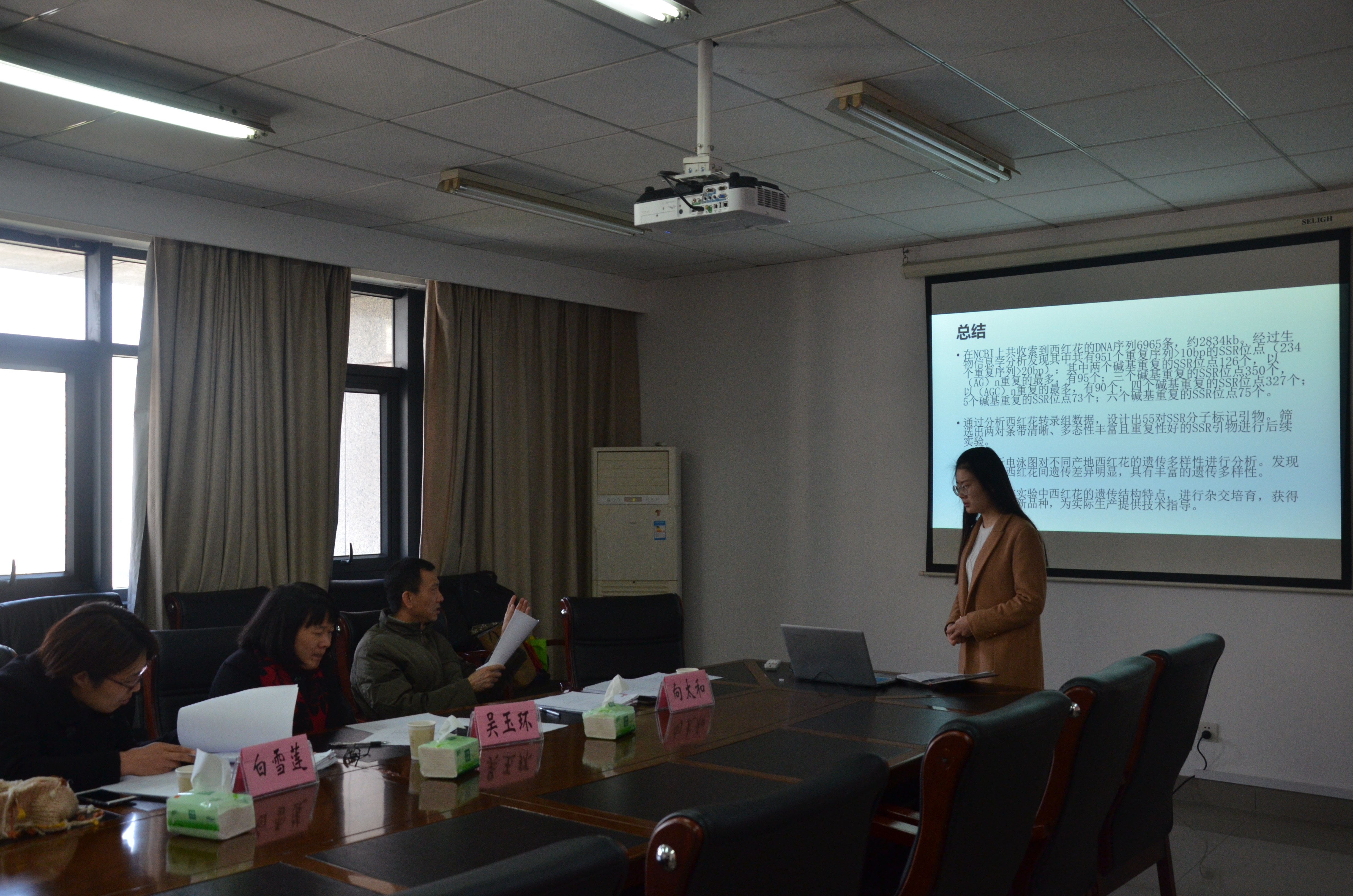 在整个报告过程中,无处不体现着科学的严谨性却不失师生间的融洽。从“品”与“品种”的区别到课题的意义,从样本采集的范围到研究对象的来源途径,从PPT的动画制作到整体的结构,老师们都耐心地讲解、批评指正,对同学们的答辩甚至是今后的学习生活有着重要的指导性意义。