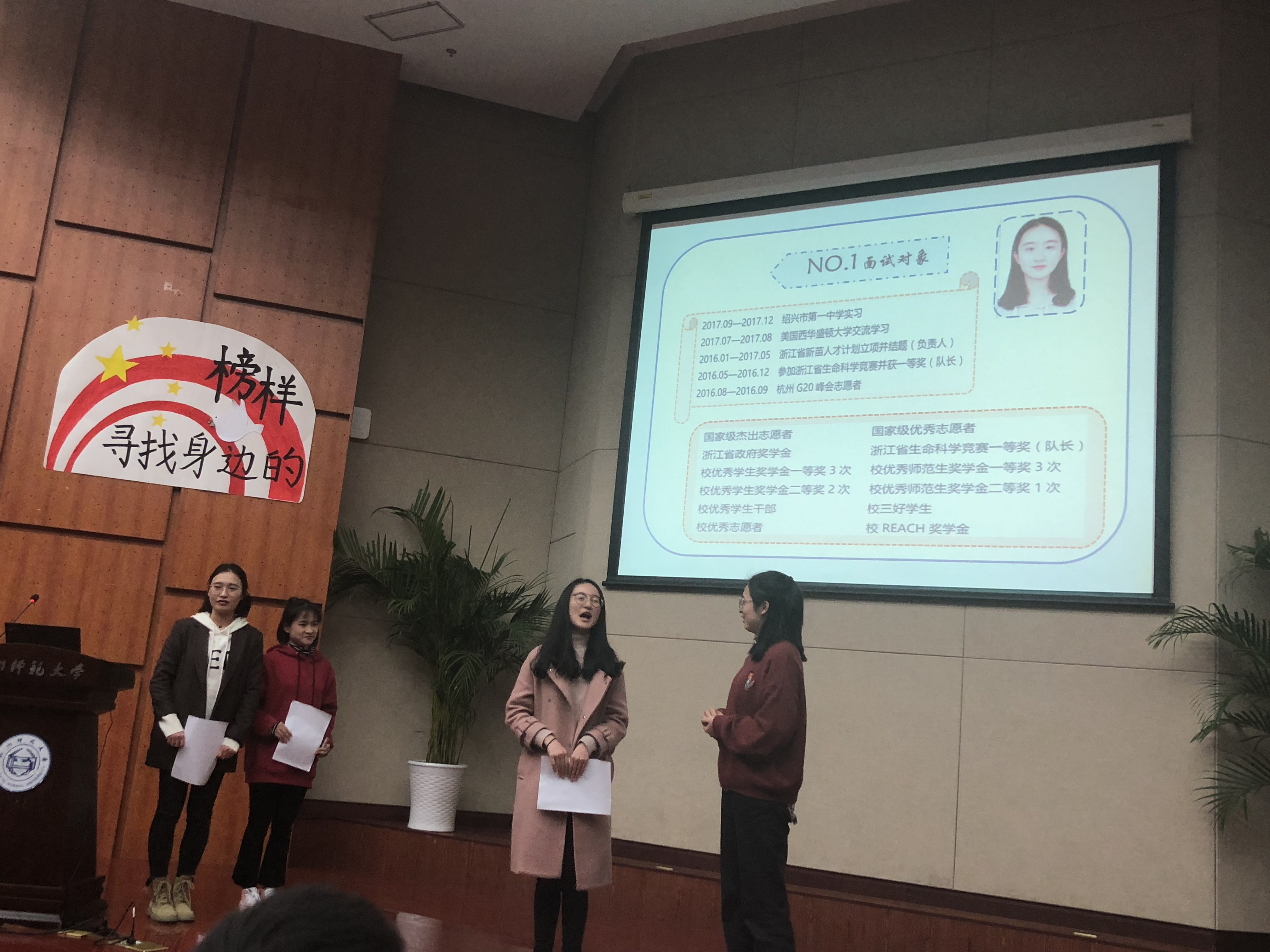 2-319寝室由寝室长滕童莹,寝室成员张露、赵晓超、徐小琪、宣祎婷、伊艳艳六位同学组成。在历年的寝室评选中,2-319寝室曾多次获得校特色寝室与文明寝室的称号,自觉遵守寝室有关管理规定和要求。在思想方面,寝室成员自觉学习党和国家的方针政策,寝室六人中现已有三人成为预备党员,两人为入党积极分子,一人为共青团员。在学业方面,寝室成员在班级中担任班长、副班长、学习委员、组织委员、文艺委员等职务。大学期间六人均获过三等及以上优秀学生奖学金,二等及以上师范专业奖学金,更有三人获REACH(励志)奖学金,三人获省政府奖学金,两人获国家励志奖学金。寝室成员曾在全国大学生“挑战杯”竞赛中取得一等奖的好成绩,于浙江省生命科学竞赛中获得一等奖4项,二等奖1项,并且寝室成员还积极参加新苗、国创等项目并顺利结题。作为大四的毕业生,寝室共有4人被评选为校级优秀毕业生,其中2名为省级优秀毕业生。寝室2名成员成功获得院内保研资格,并已成功保研中国科学院、浙江大学,另有一名成员获得省师范生技能大赛一等奖,目前正认真准备国赛。