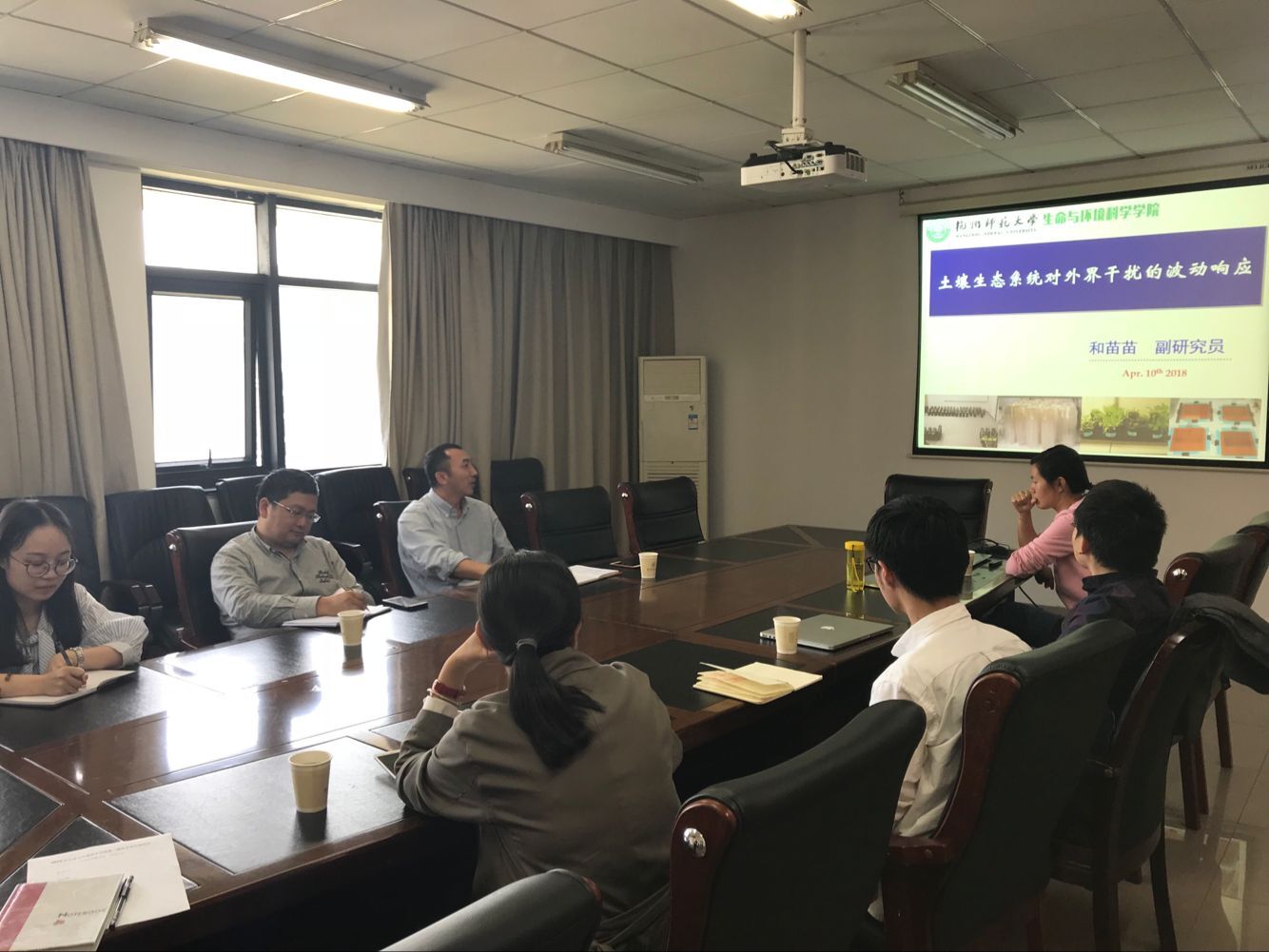 4月10日上午,毛巾哥探花 在下沙行政楼804会议室举行了本年度生科院第一期学术论坛(生科论坛第9期),论坛由于彦春副院长主持。和苗苗和谭舟两位老师分别作了《土壤生态系统对外界干扰的波动响应》和《SEPT2和9双基因干扰协同抑制胶质母细胞瘤生长》学术报告。学院近20位教师和研究生等参加论坛,与会人员针对两位老师的报告提了许多问题,两位老师作了仔细解答,论坛在大家的讨论声中落下帷幕。