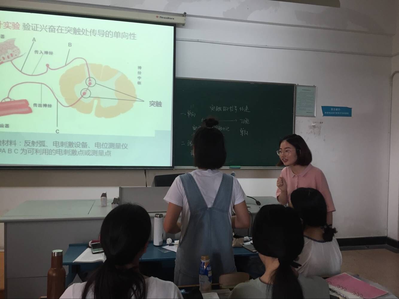 在此次技能培训前,学生根据任教授所布置的高中生物学必修一《神经冲动的产生与传导》的相关教学内容,利用课余时间进行教学选点以及模拟上课的构思、实践与练习。培训中,由肖云瑜等5名本科生展示模拟上课的内容。