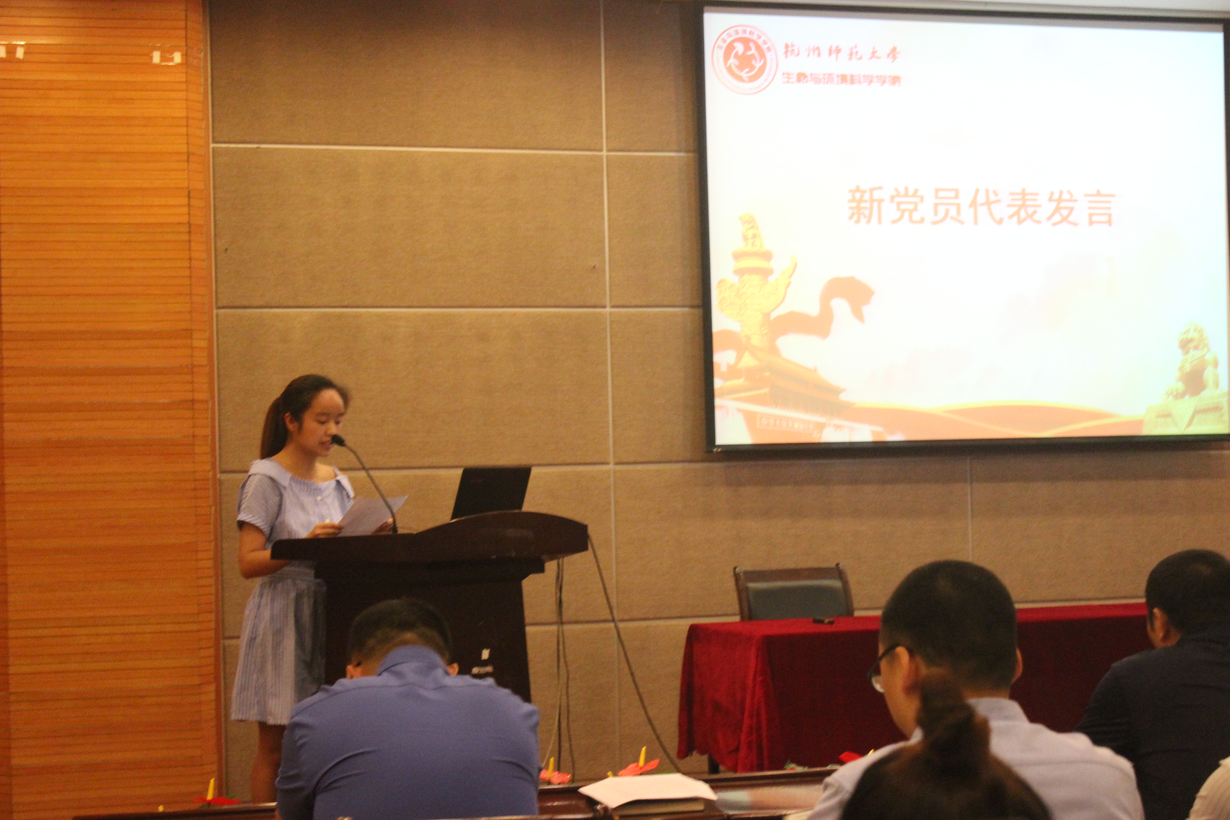 最后,由党委书记张杭君老师为我们总结发言。党的97年的风雨历程是令人难忘和感慨的。张杭君老师带我们回顾了生科院过去一年在学科教学、人才培养等方面上取得的进步,并且,为进一步加强和改进党的建设、推动学校、学院事业新发展向在座的师生党员们提出了时时加强党性修养,专业实践相结合,做好服务杭州工作等三点要求。