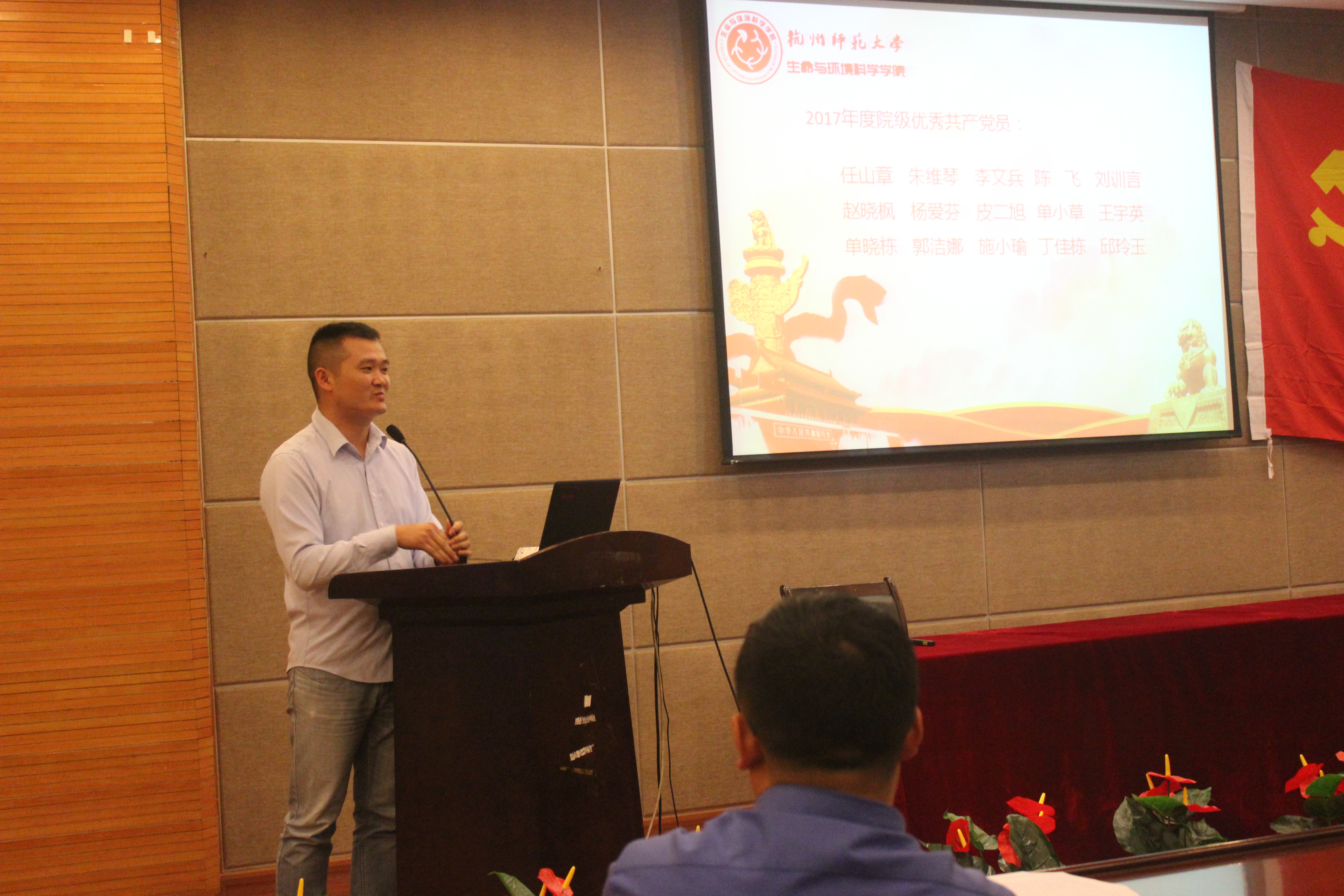 随后学院表彰了2017年度优秀共产党员。这些优秀党员们默默地在一线工作,勤勤恳恳,为我们做出了良好的表率。在场的共产党员们用最热烈的掌声向他们致以最衷心的祝贺和最崇高的敬意。