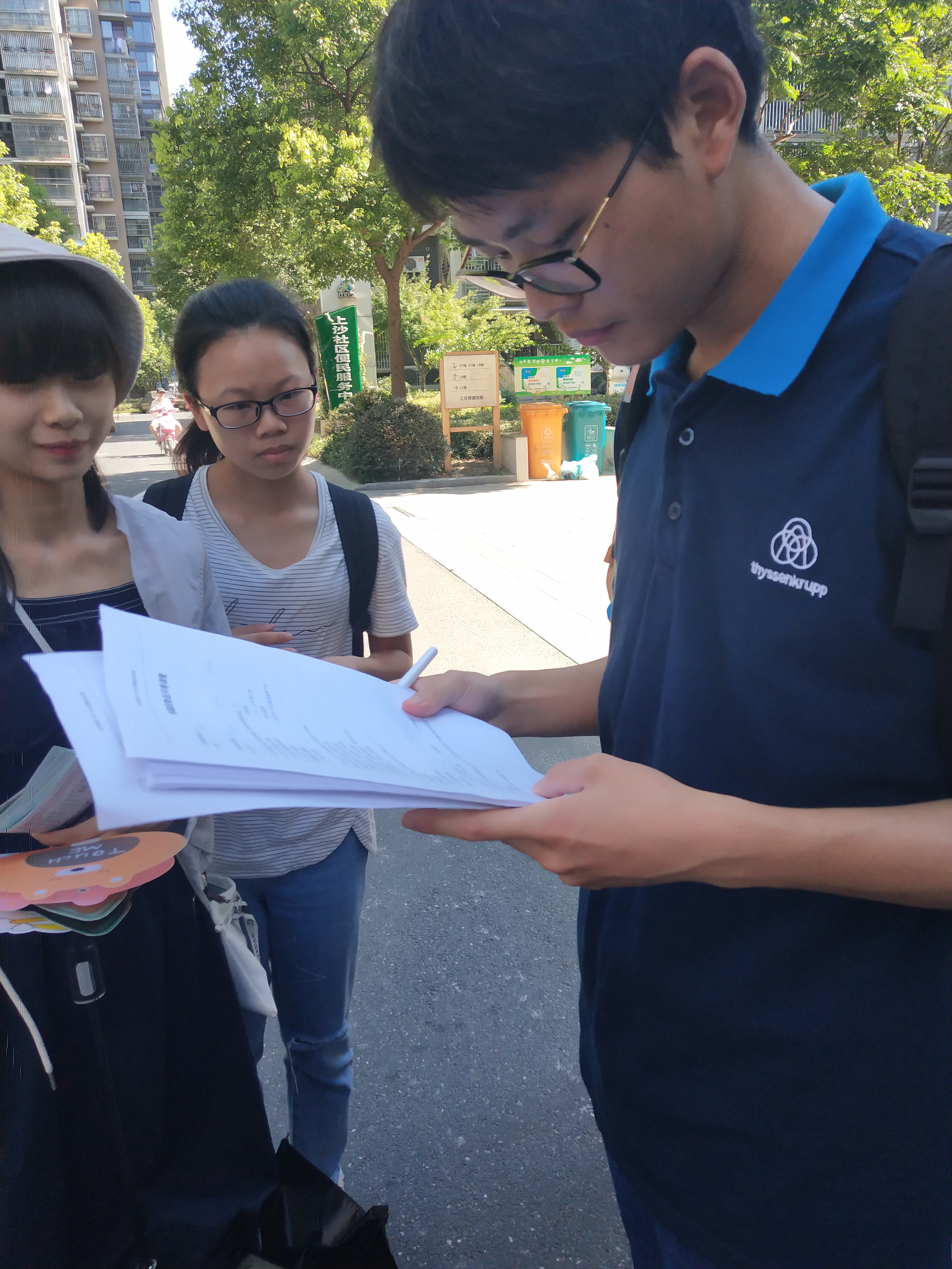 2018年7月21号转基因社会实践活动小组成员在江干区的上沙锦湖家园进行了第一次的社会实践活动——转基因宣讲会,此次活动以发放问卷和宣传册为主。