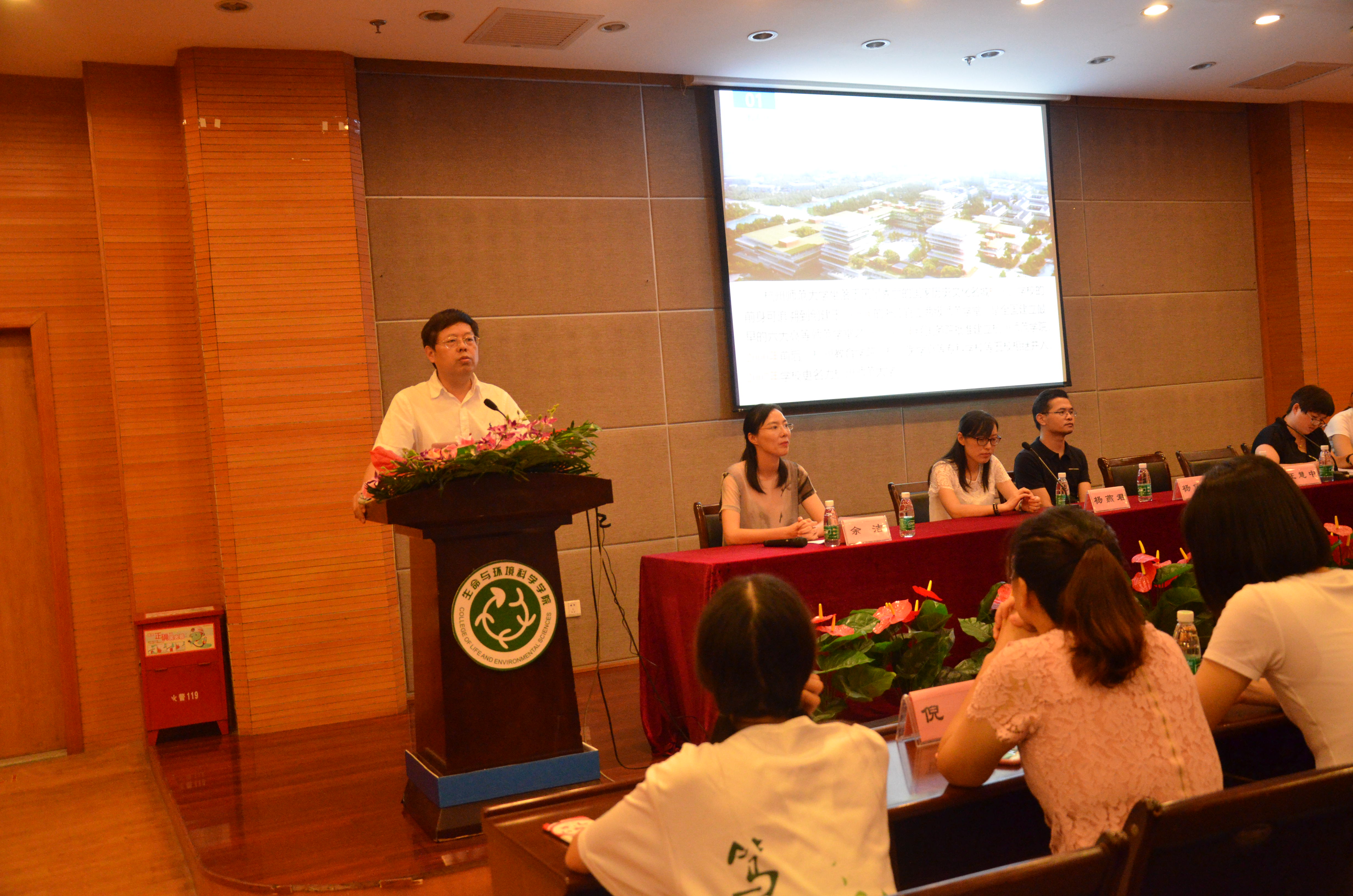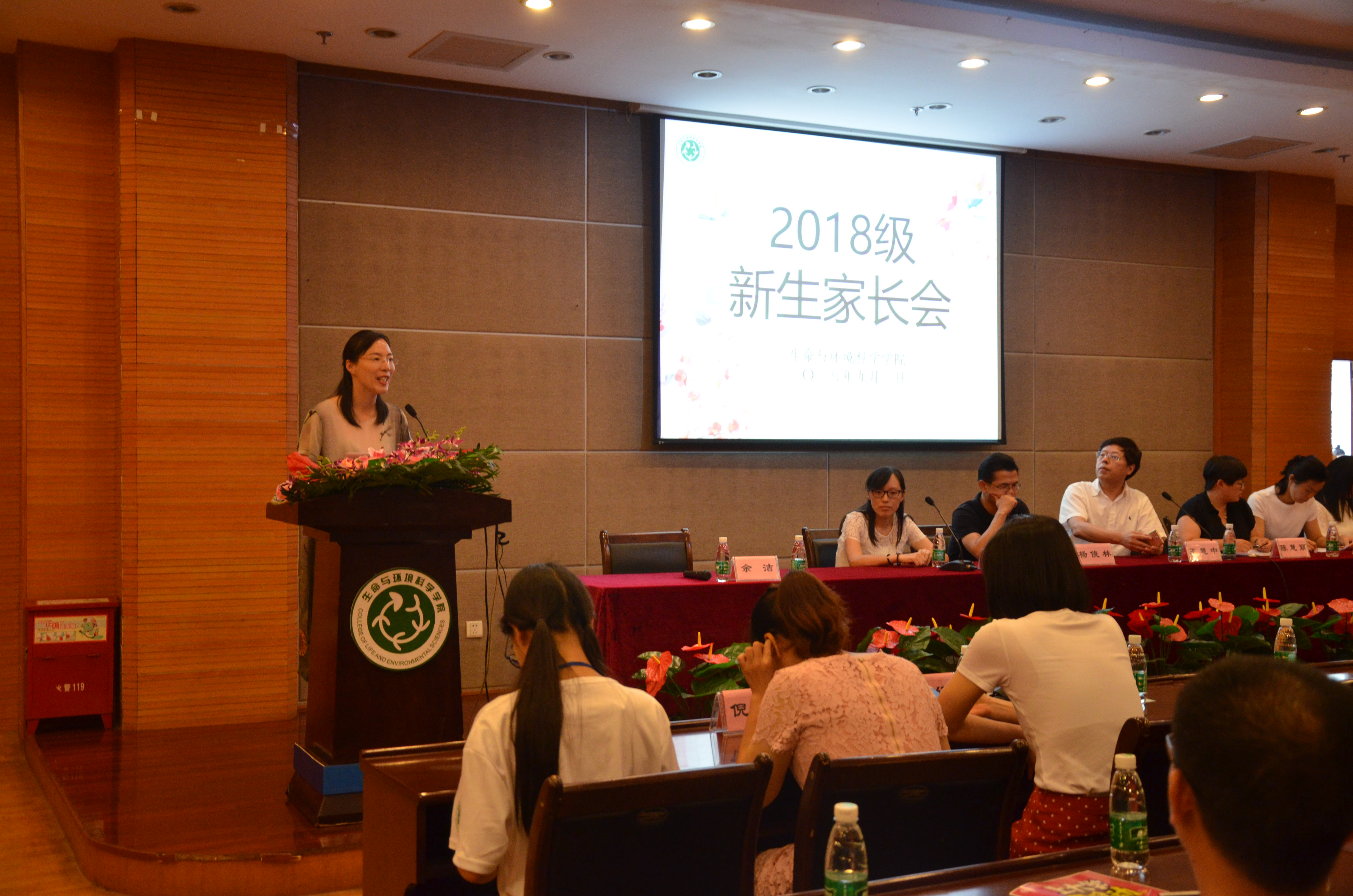 党委副书记余洁老师紧接着为新生家长介绍了各新生班级的班主任:生命科学类181班主任陈慧丽老师、生命科学类182班主任杨燕君老师、生命科学类183班主任杨俊林老师及环境食品类181班主任和苗苗老师、环境食品类182班主任俞春娜老师。随后,各位老班主任师与新生家长进行了交流,对家长们关心的问题作出了细致地解答,让家长对学生今后的大学生活有了更充分的了解。