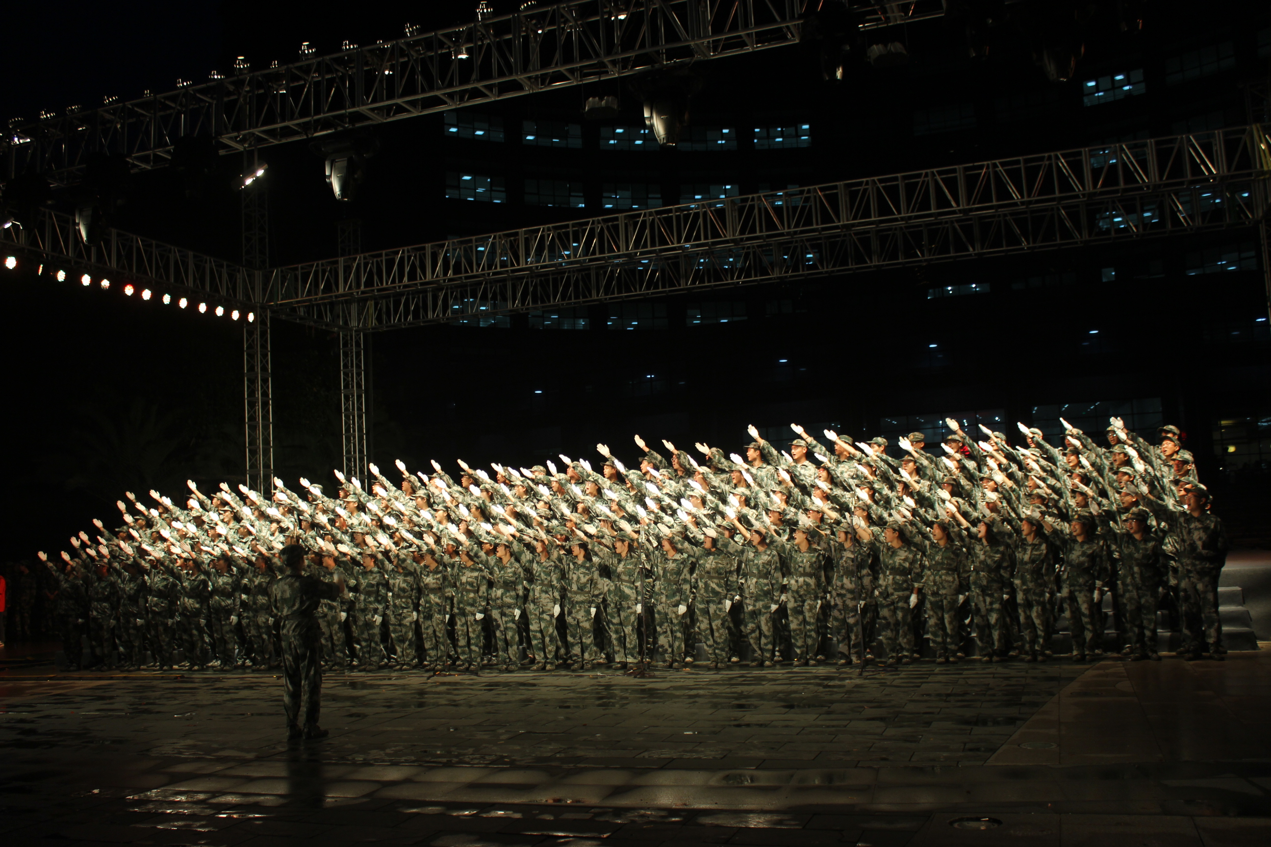 青春飞扬,军歌嘹亮。为弘扬爱国主义精神,增进同学情感,2018年9月11日晚,伴着夜幕星辰,礼乐响起,图书馆前人头攒动。作为军训活动之一,毛巾哥探花 (下沙校区)2018级同学们在图书馆前举行了合唱比赛。
