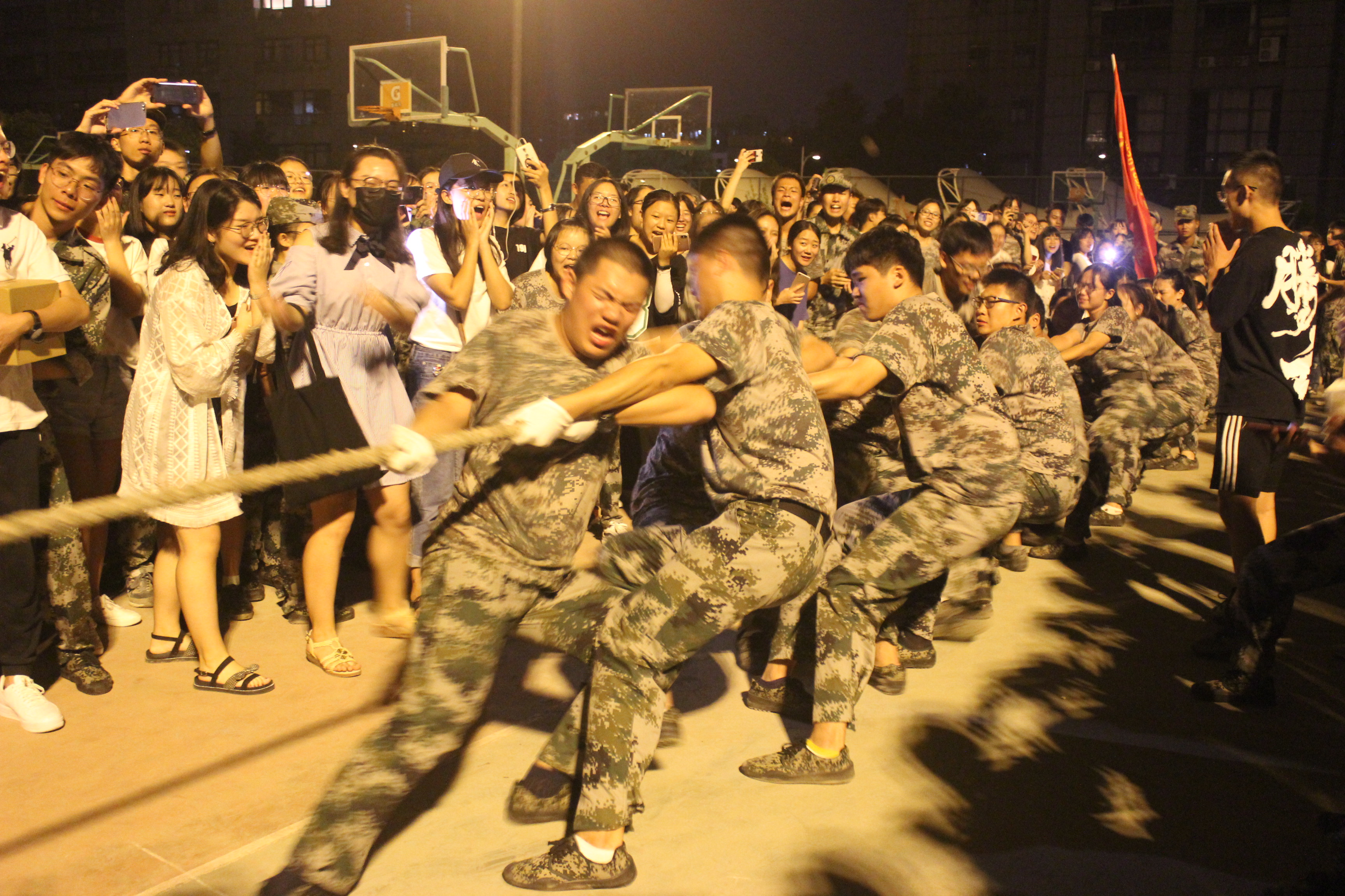 9月9日晚19:00,为了丰富学生们的军训生活,培养同学们团结协作、永不言弃、坚持拼搏的良好品质,毛巾哥探花 下沙校区于灯光篮球场举行了2018级新生连队拔河对抗比赛。