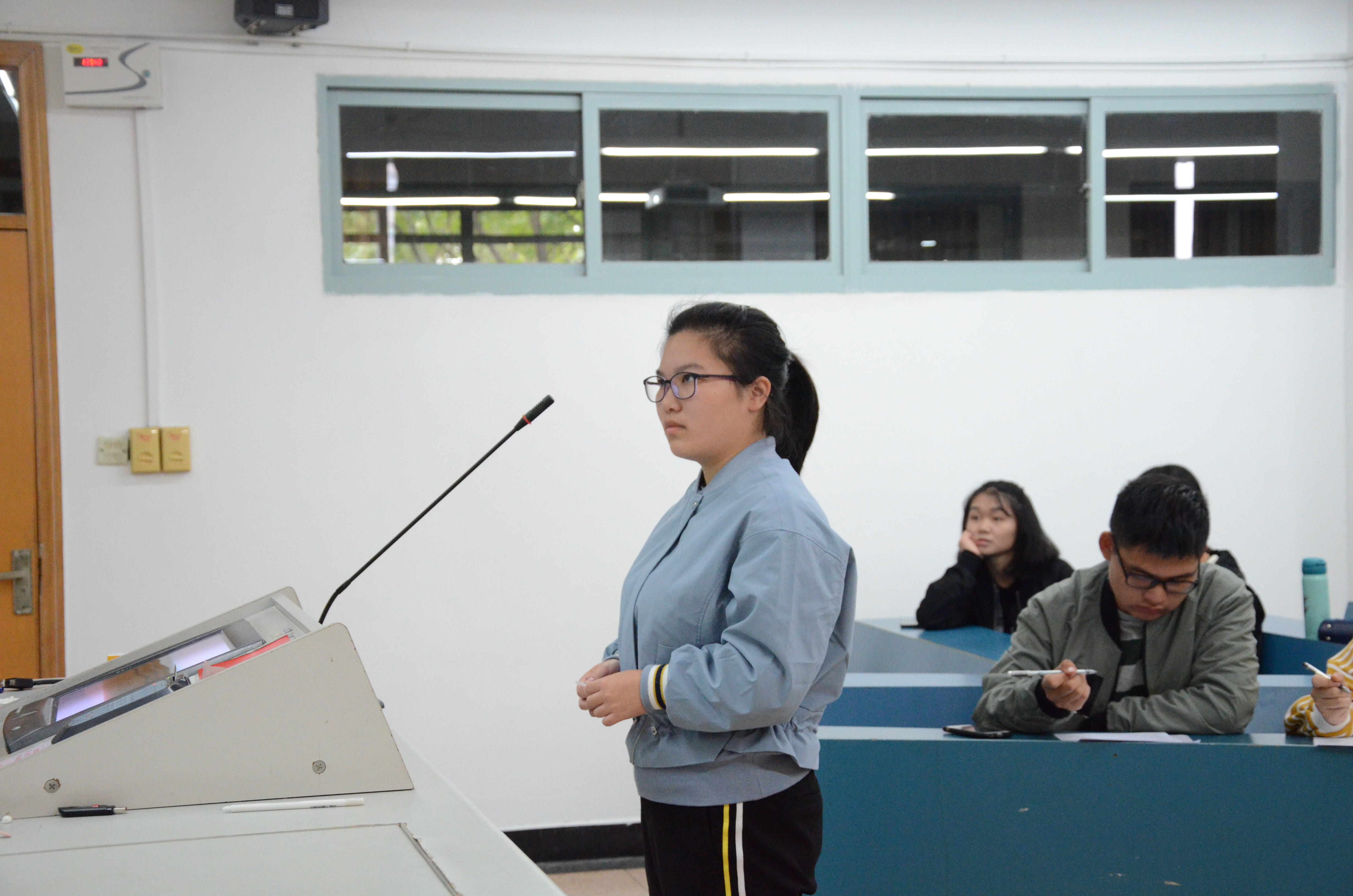 在竞赛开始前,参赛选手们的脸上都洋溢着自信的笑容,观众席上的同学更是满怀期待的目光。在主持人宣布竞赛正式开始后,选手们抽签以决定第一轮答题顺序。第一轮竞赛要求选手在一分钟之内进行答题,答题数目越多获得的分数也就越多。同时每个人都有一次免扣分跳过题目的机会。在第一轮的选拔中,每位选手既紧张又兴奋,自信认真的回答每一道题目。观众席上不时爆发出阵阵热烈的掌声。第一轮答题结束后,8位优胜选手进入了晋级赛。
