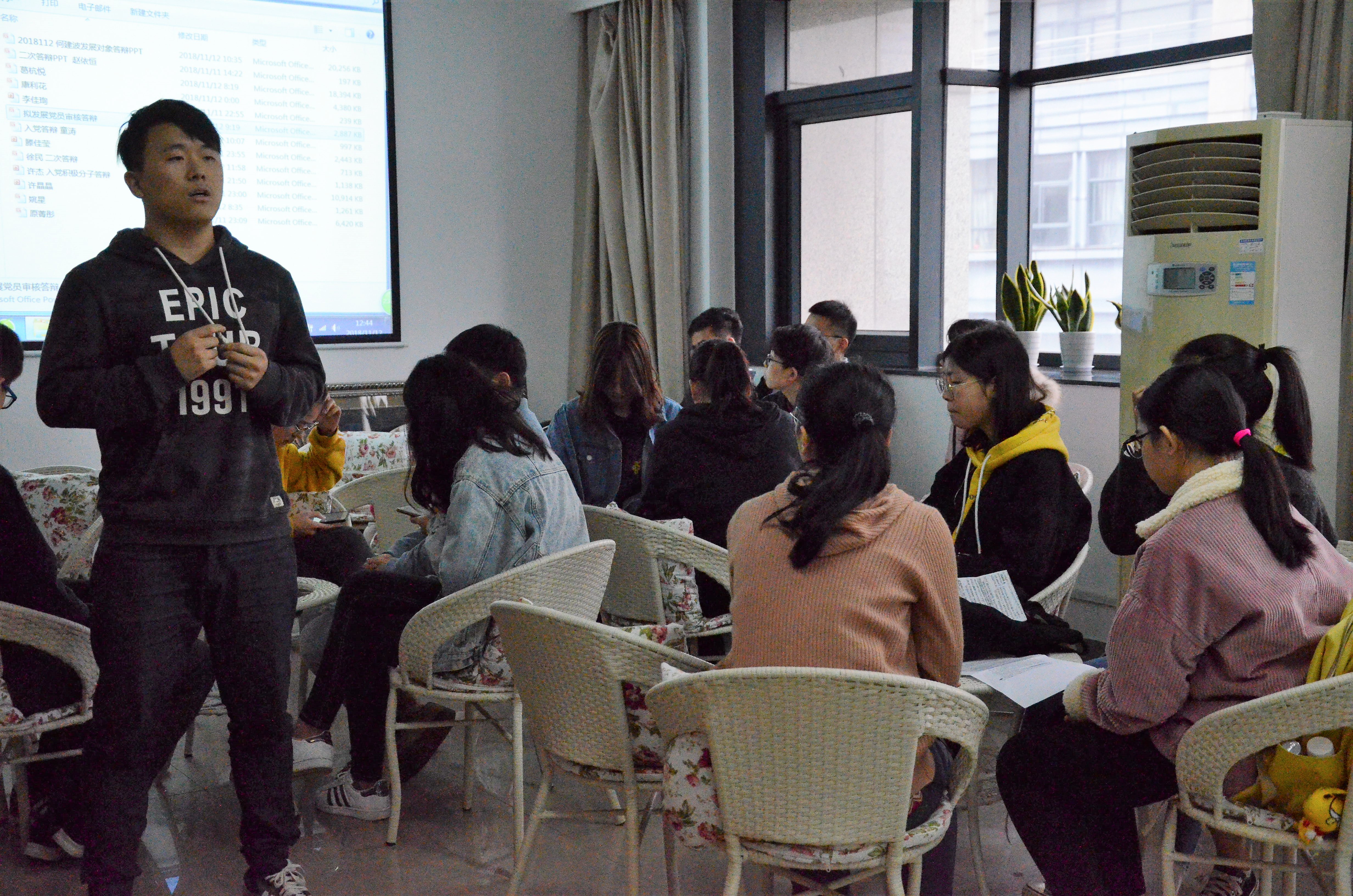 17名发展对象经过党支部的一轮答辩后,准备更加充分,此次答辩以党的十九大报告以及习近平总书记在教育大会讲话精神为主题,结合同学们各自专业知识、学习目标,在陈述对党的理论知识的看法认识基础上坦诚自身存在不足,并针对不足制定解决方案汇报自身发展规划。