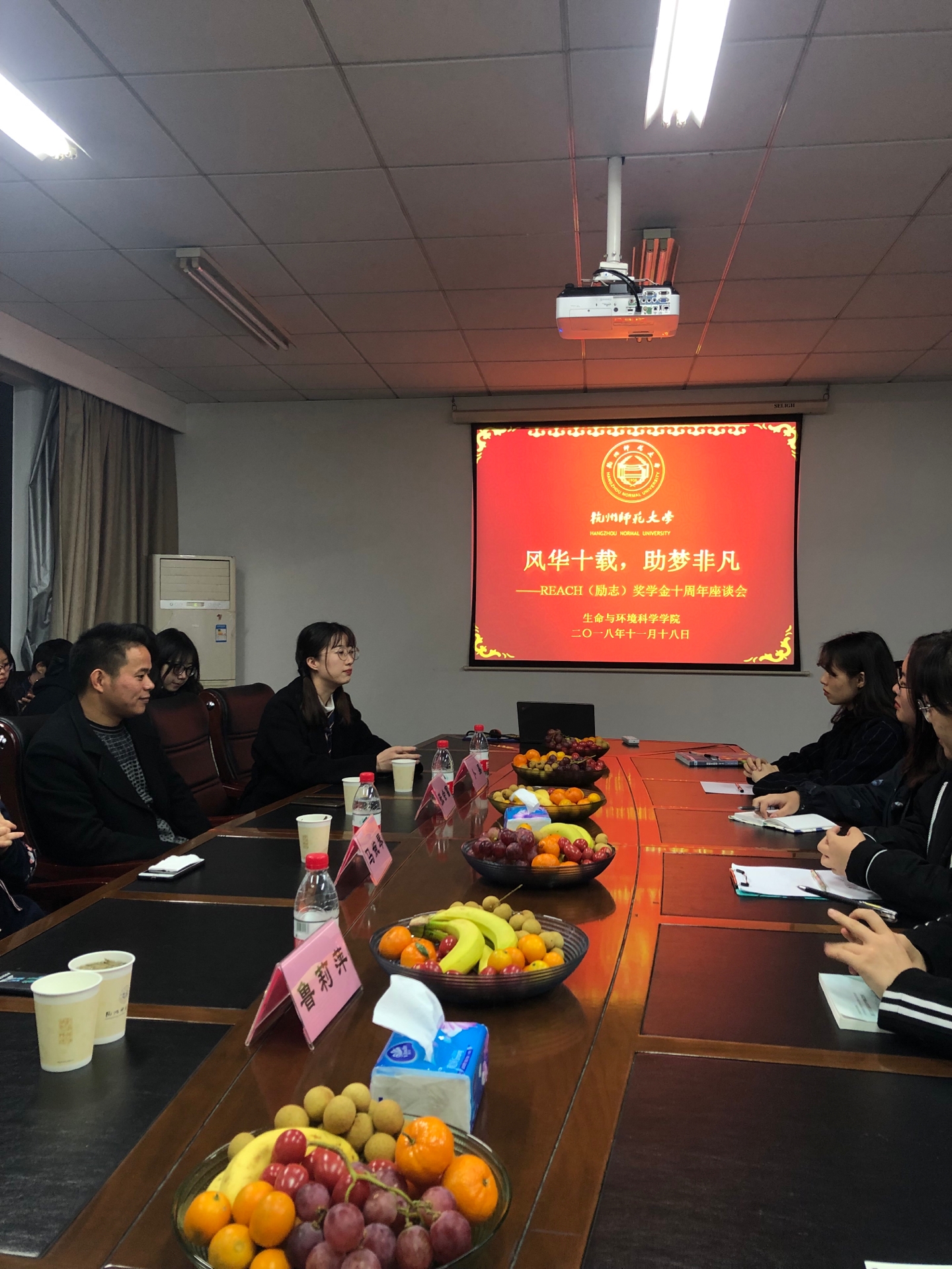 11月18号下午,毛巾哥探花 在行政楼804举行了“风华十载,助梦非凡”——REACH(励志)奖学金十周年校友座谈会。参加座谈会的有毛巾哥探花 院友、浙江省委教育工委副书记、省教育厅副厅长鲍学军,毛巾哥探花 院友、华尔泰国际纺织(杭州)有限公司董事长、REACH(励志)奖学金资助人之一徐博华,生科院党政领导班子,第一届REACH(励志)奖学金社会工作奖获得者、2010届校友张会富,第六届REACH(励志)奖学金文艺体育奖获得者、2017届校友卜易,第七届REACH(励志)奖学金学业优胜奖、2016届校友获得者鲁莉萍、第八届REACH(励志)奖学金创新创业奖、2016届校友获得者马婉琴。座谈会由生科院学工办主任倪雅主持。