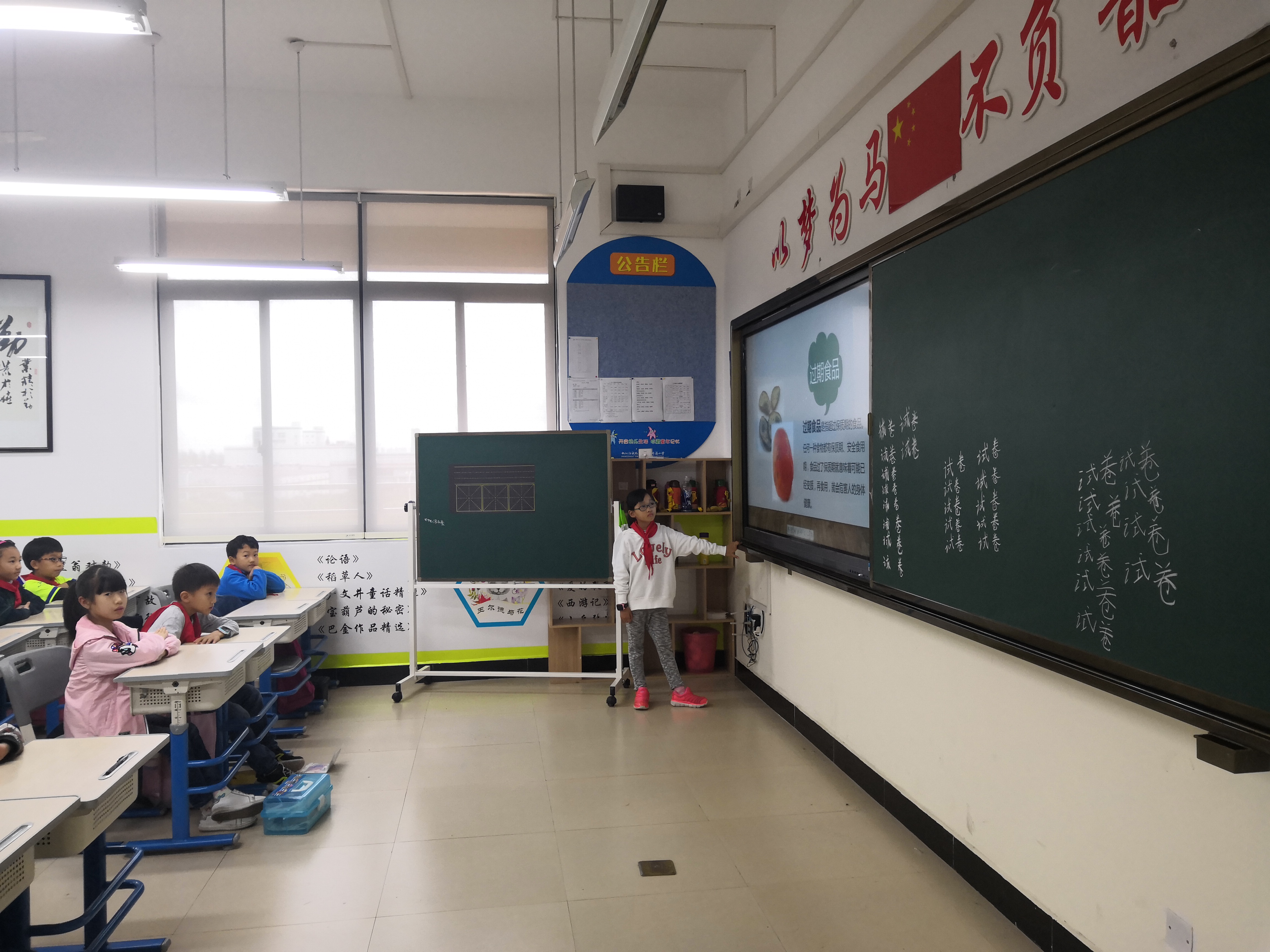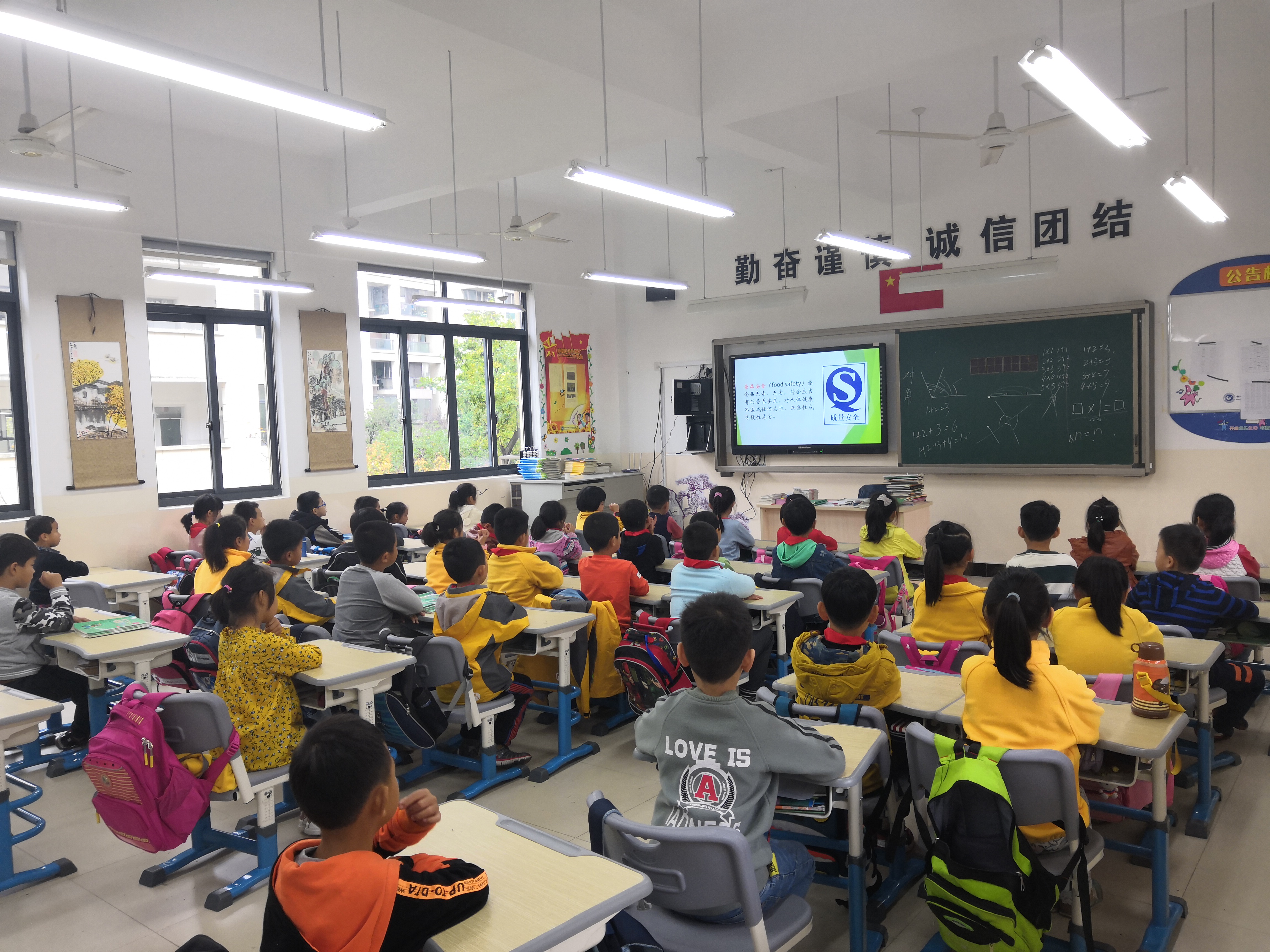 中午十二点四十分,环教部的讲师抵达了听涛小学,并受到了负责老师的热情接待。在一番准备工作后,讲师开始了热情趣味的讲解。首先是关于食品安全知识的大体概括,讲师的生动讲解引起了现场大部分小朋友的兴趣,瞬间将他们的注意力拉到了课堂当中。紧接着讲师还对食品包装袋上常有的食品安全图标以及参数进行了详细说明,并着重强调了“日常生活中应该少食用油炸荤腥等垃圾食品,多食用瓜果蔬菜”这一小常识。
