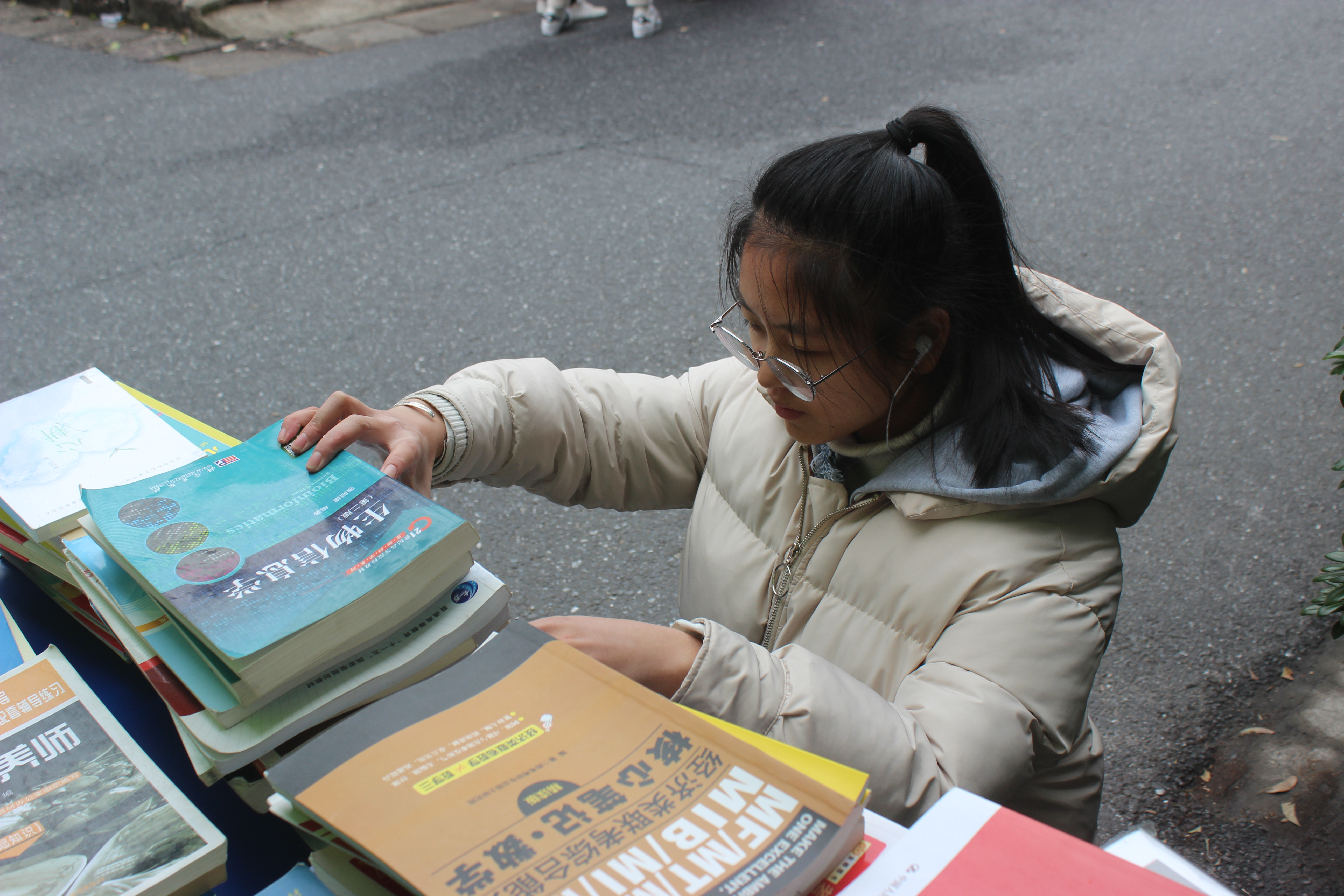 另一部分的图书捐赠分为“捐”和“赠”。参加活动的同学不仅可以捐自己的旧书给其他同学,同时也获得赠书。吴昊楠同学一个人就捐赠了一箱的书,他表示这些书自己已经看过,希望可以充分地利用这份资源。获得赠书的方式也非常简单:在心形贺卡正面送出自己的祝福,反面写上自己的联系方式和姓名,然后就可以领取自己心仪的书籍了。后来的同学还可以领取前面同学的祝福并和他互送温暖。其中还有“我想过四级”“希望以后可以有人一起看雪”的愿望等等。看着挂绳上满满的爱心,顿时就给冬日里的同学送来了一份温暖的感觉。
