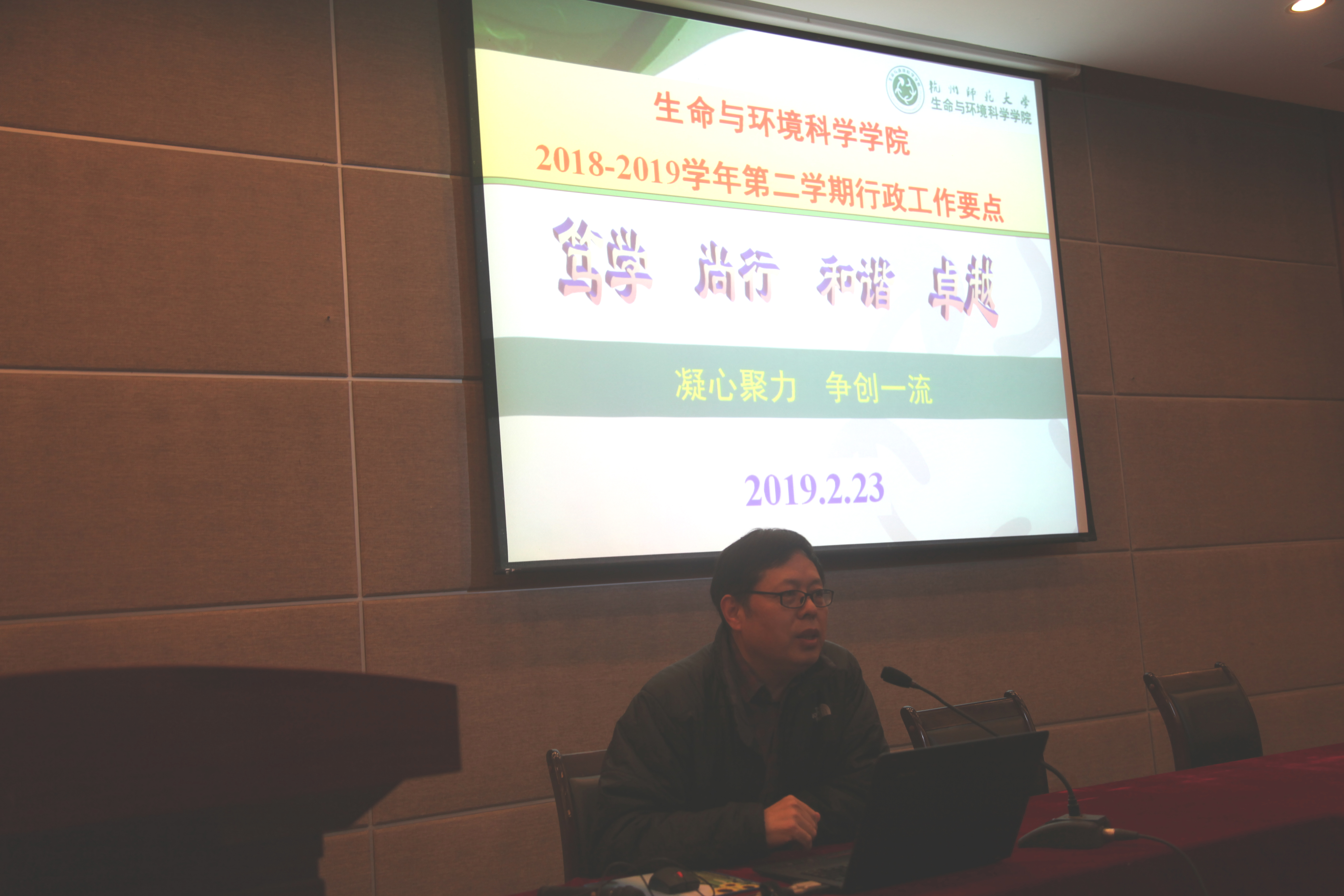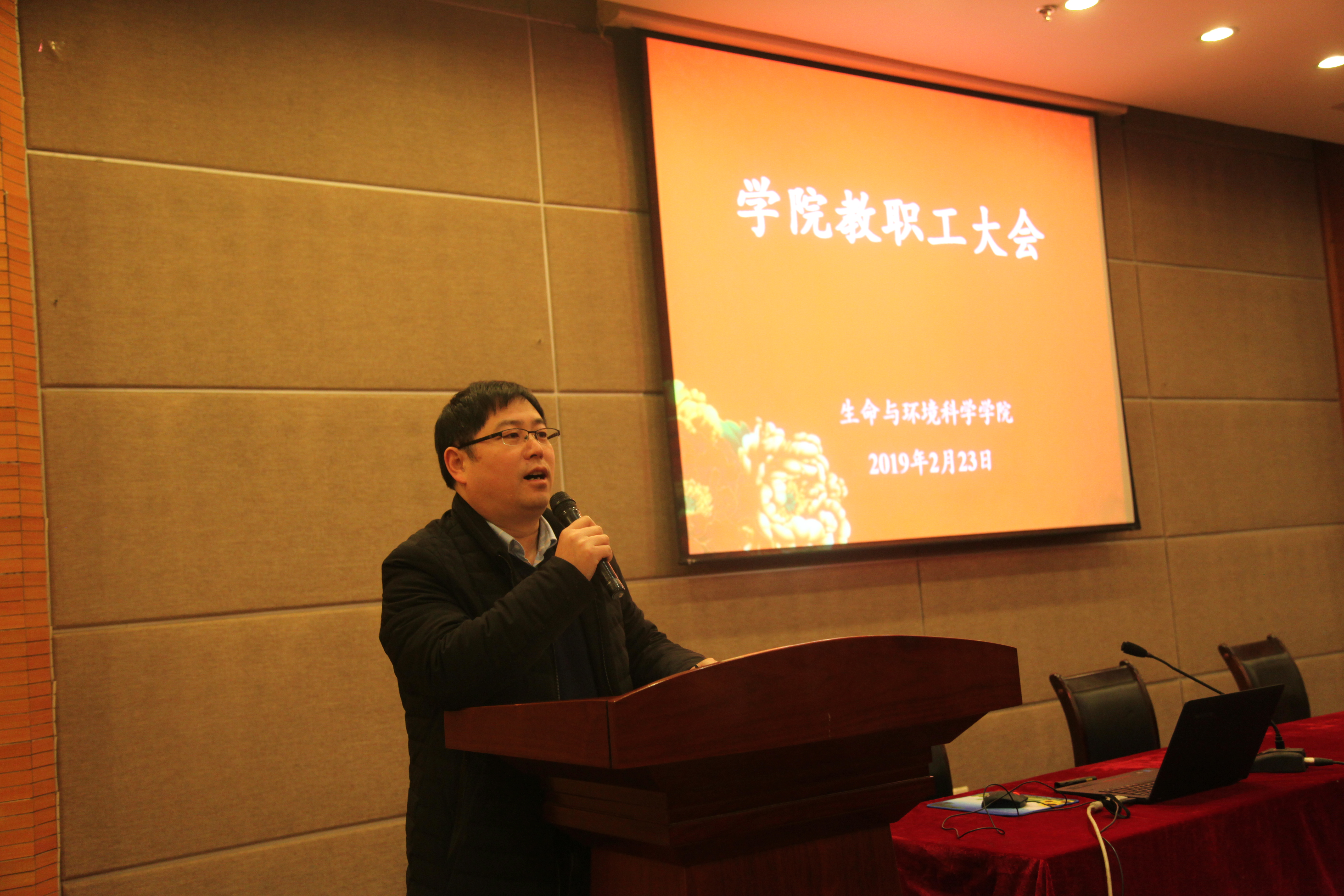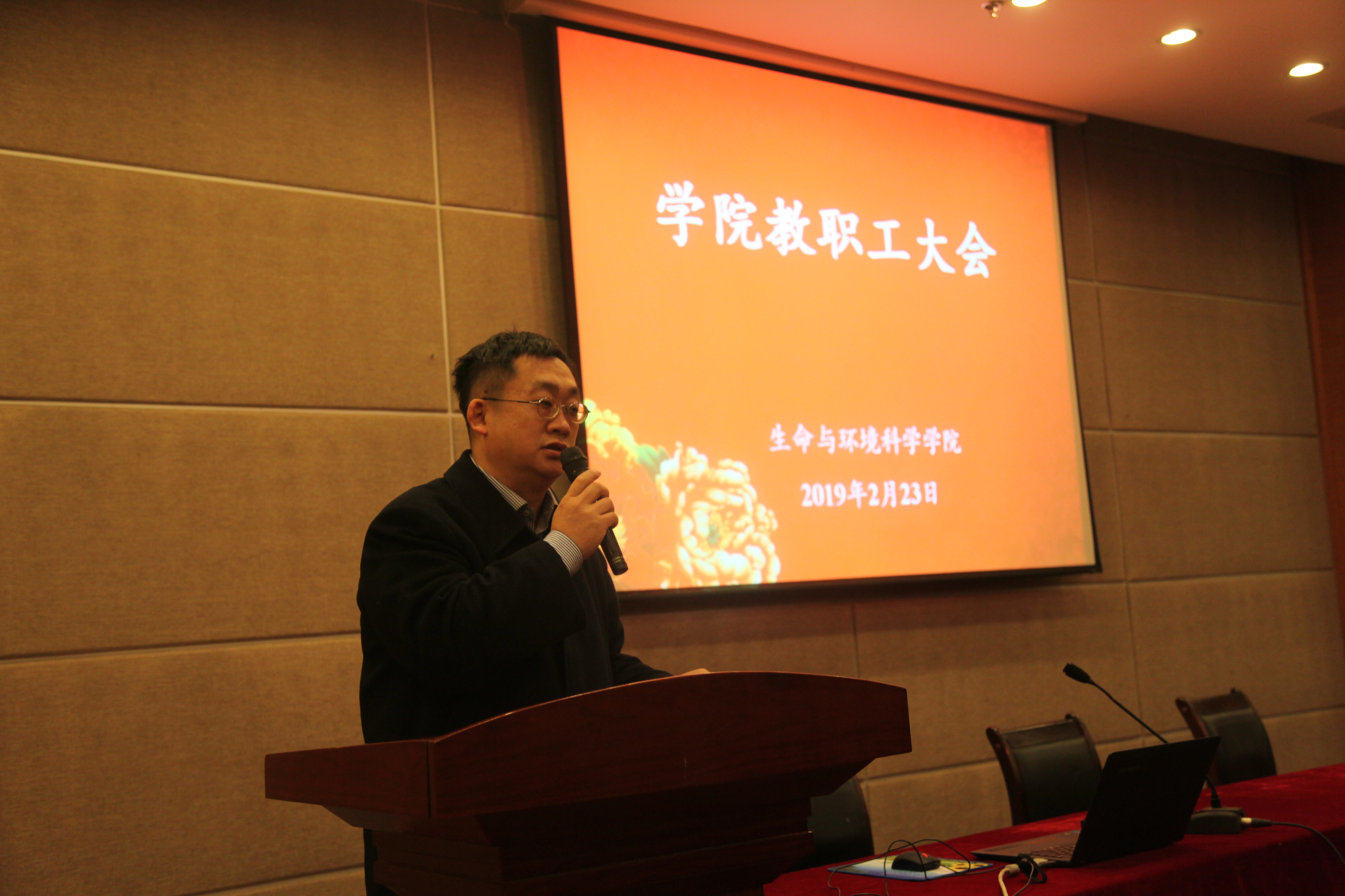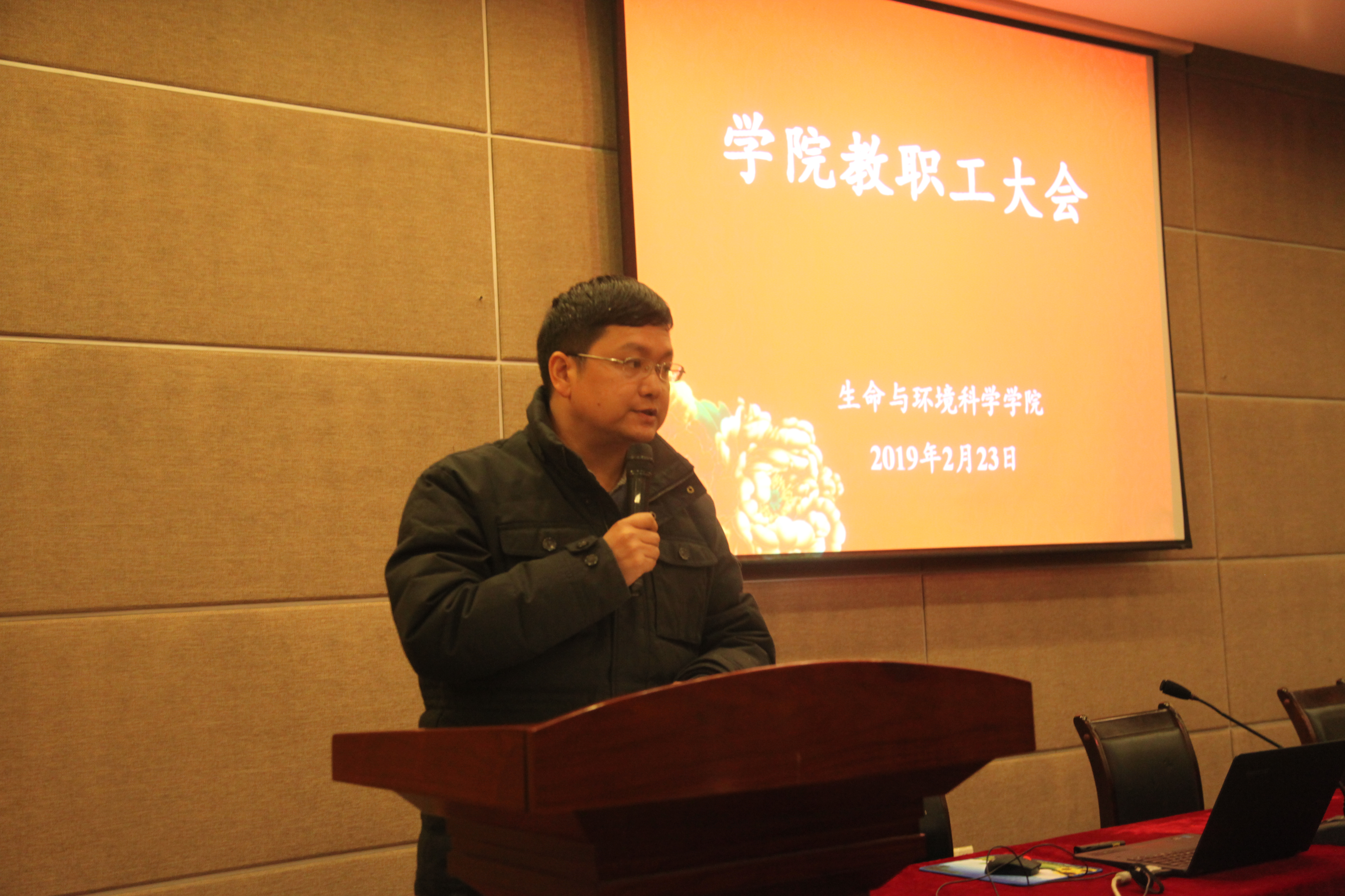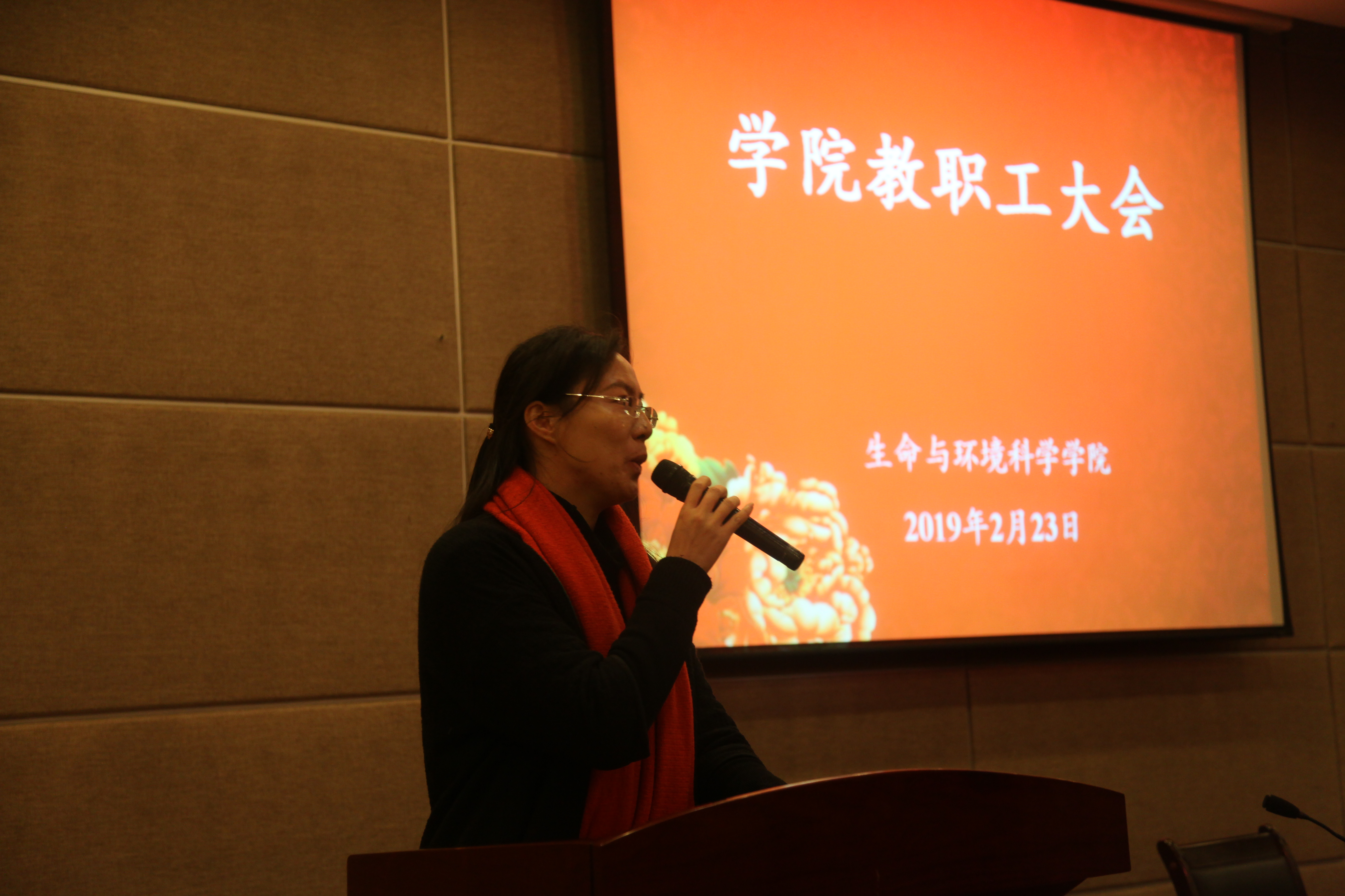 2019年2月23日上午,生科院在下沙行政楼叙伦厅召开新学期全院教职工大会,会议由学院党委副书记余洁主持。