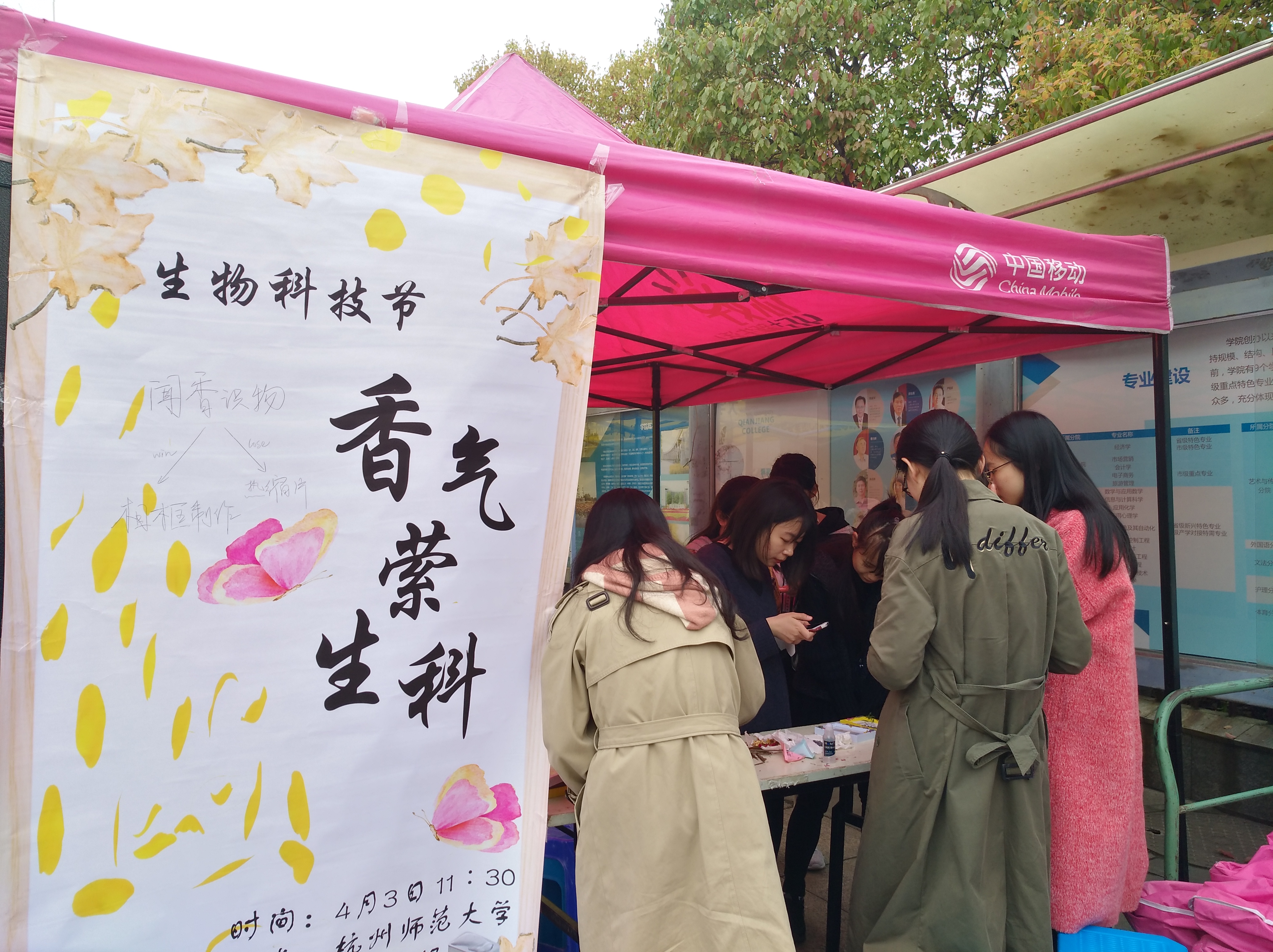 2019年4月3日,由B.D.服务社、自律维权部、“生命缘”青年志愿者协会、野百合艺术团共同举办的生物科技节“香气萦生科”活动在二期食堂广场顺利展开,为各位爱好动手制作的同学们提供了一个展现自己创意和灵感的平台。