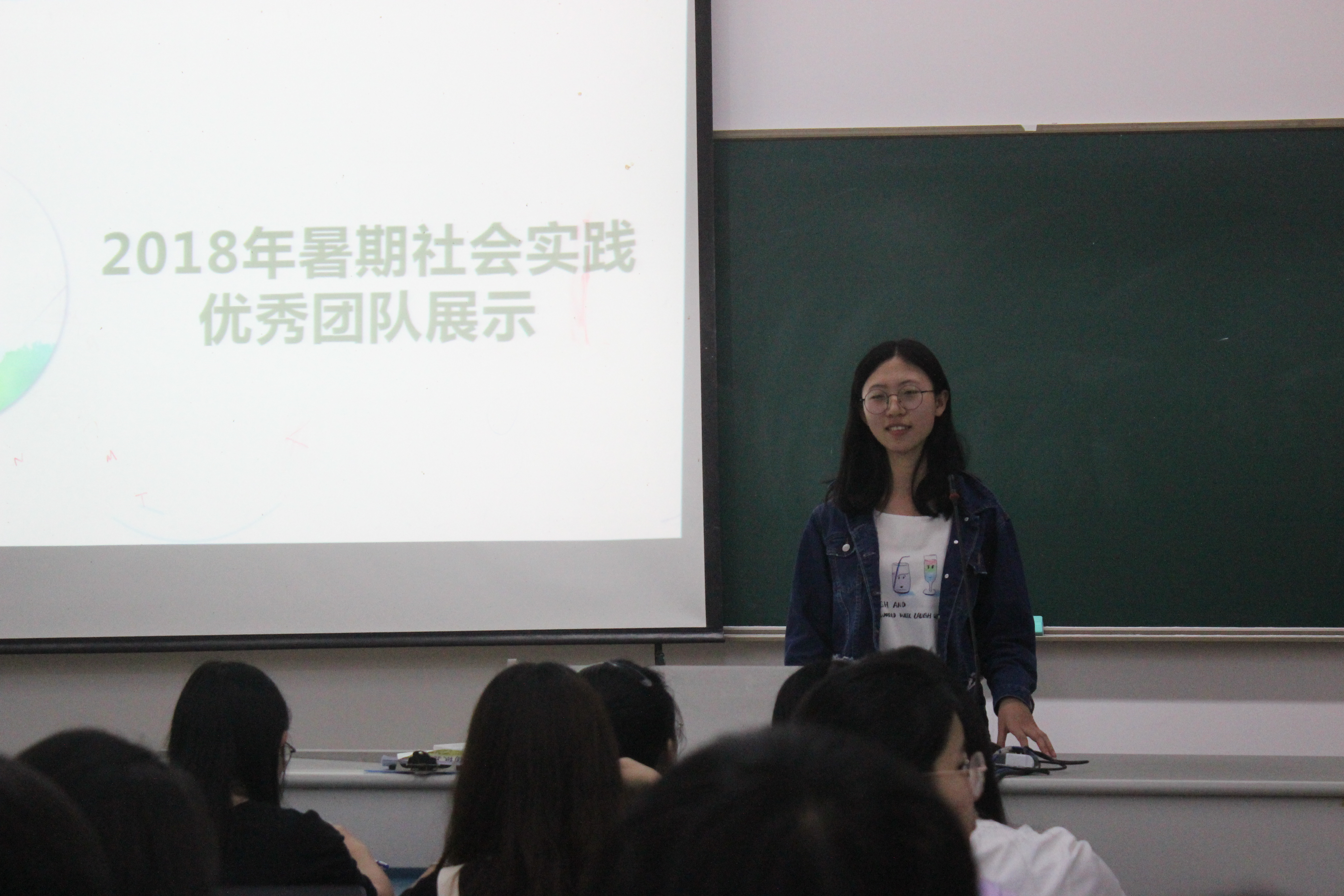 其次,由2018年暑期社会实践优秀团队负责人刘颖艺同学交流分享经验。刘颖艺同学所参与的走进转基因项目是有张弦老师指导下的团队,老师有强烈的资源支撑,以及转基因队内细致化管理,各个小组的分工合作,是他们团队成功的关键。她给每个实践团队负责人提出建议,希望增加考核制度,大家的积极性可以得到充分地带动。