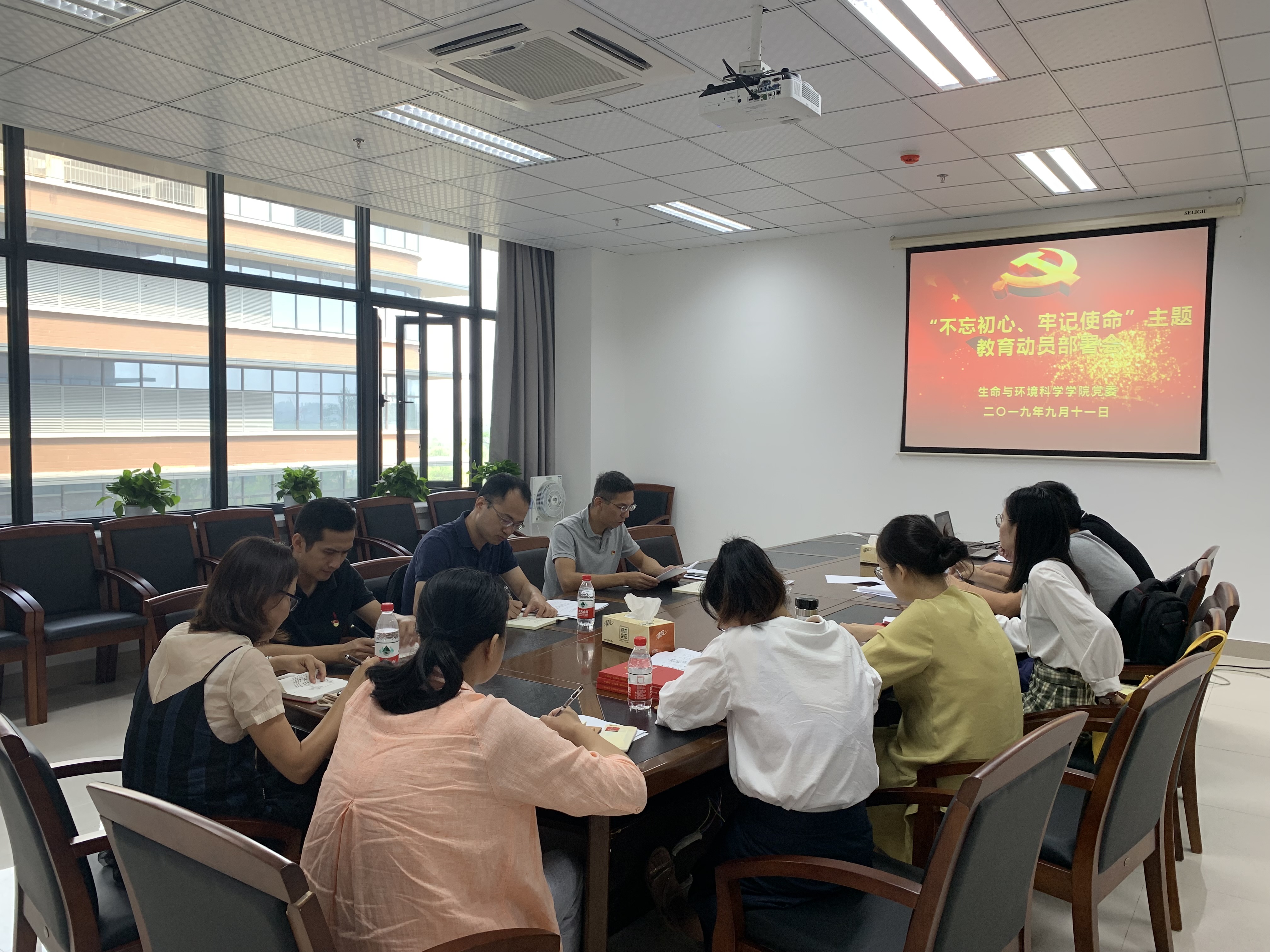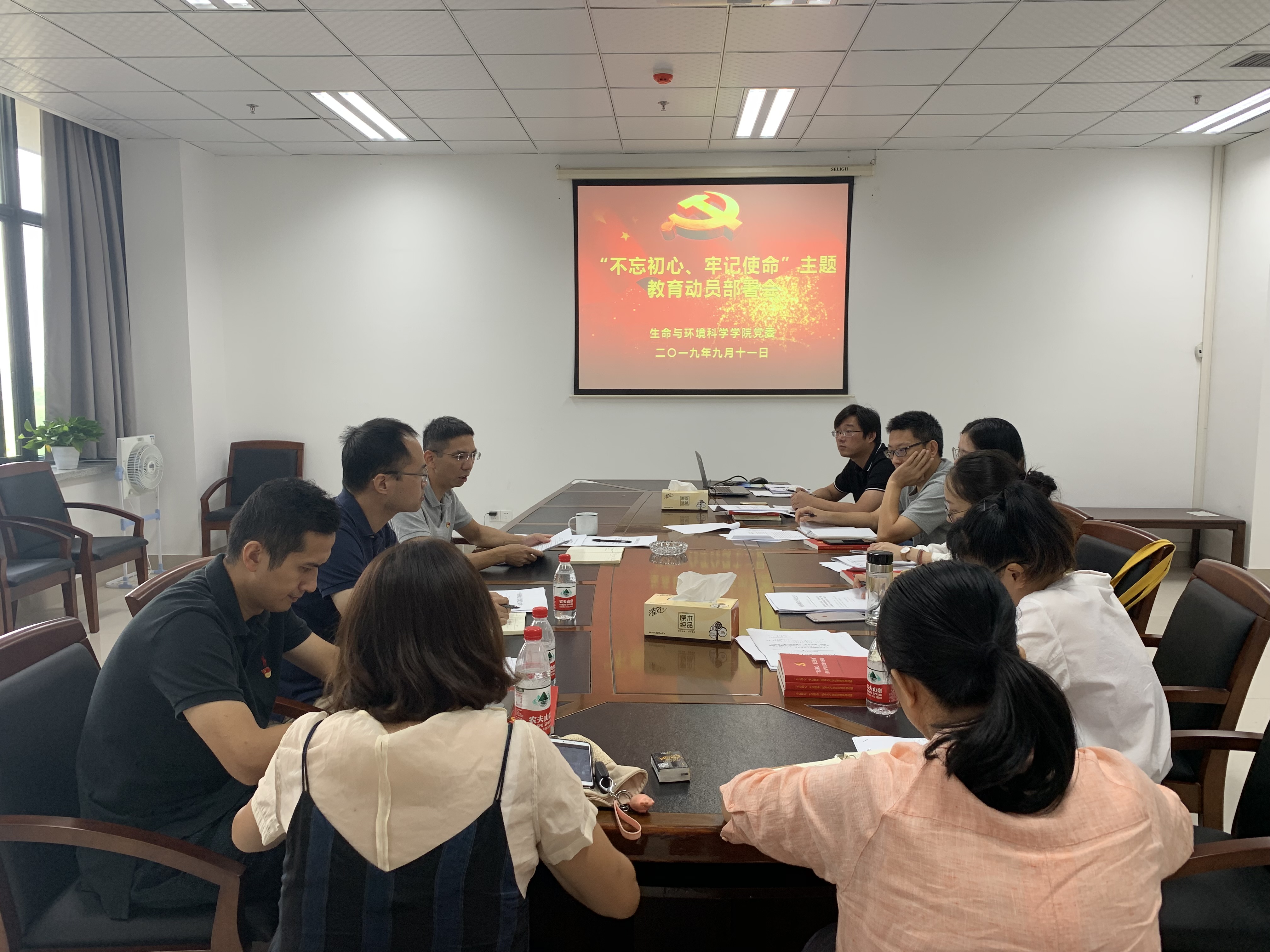 院党委书记张立明结合高校安全稳定工作会议相关精神和“平安护航新中国成立70周年”会议精神,就如何进一步推进学院党建工作暨“不忘初心、牢记使命”主题教育动员进行具体研究部署,明确2019年9月至2020年2月生科院七项重大内容:一是开展学院“不忘初心、牢记使命”主题教育;二是学院党组织标准化建设;三是持续做好巡察反馈问题整改工作;四是认真做好后续实验室搬迁工作;五是开展“平安护航新中国成立70周年”主题活动;六是做好学院党风廉政建设;七是学习强国APP面向非党员师生推广工作。