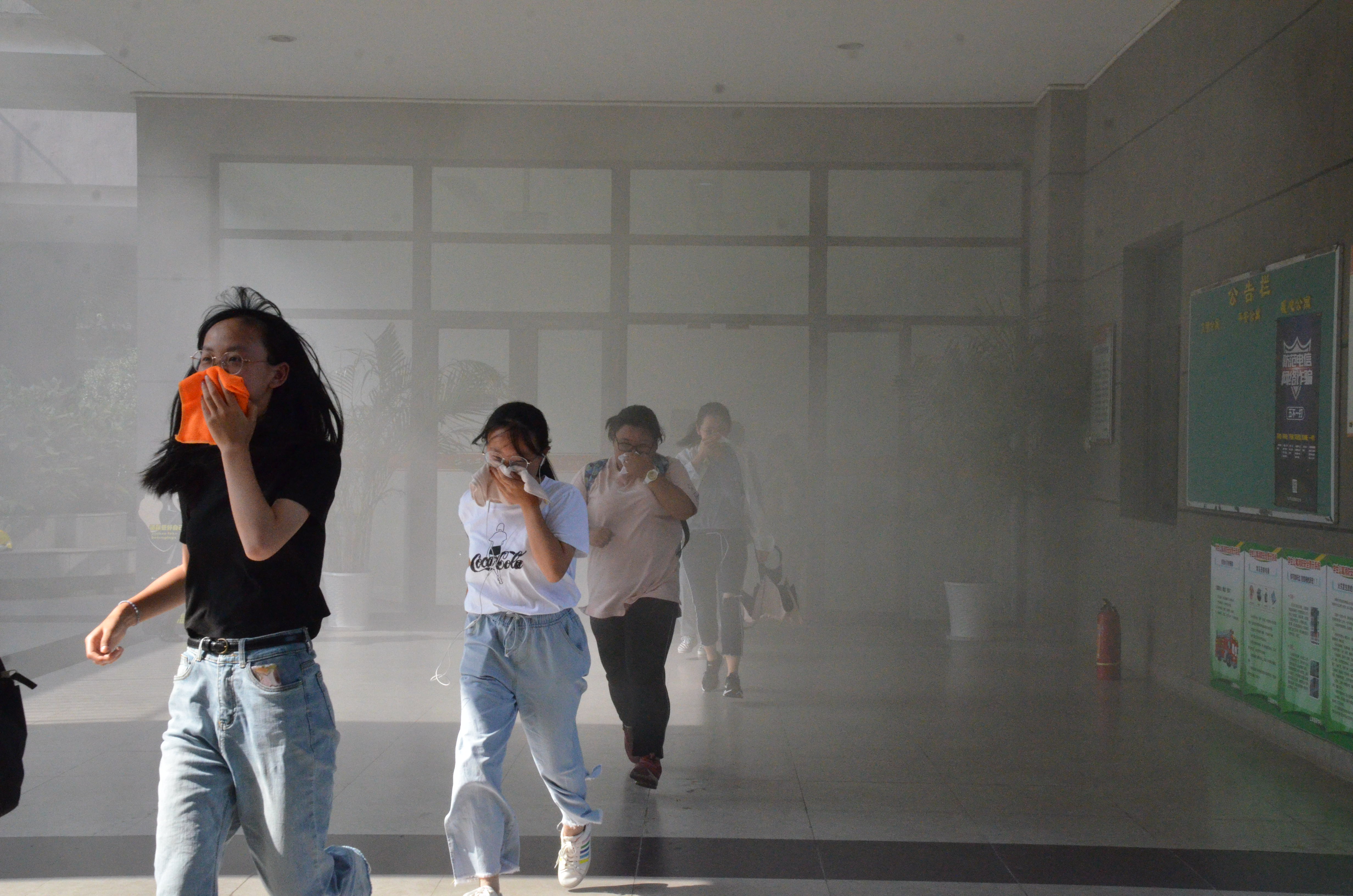本次活动中,同学们听从组织安排,服从老师指示,进入博文苑6号楼8层进行逃生演习。工作人员在一层投放烟雾假设着火,同学们手持湿毛巾捂住口鼻从所在楼层逃生。面对演习。同学们井然有序从楼梯逃生。