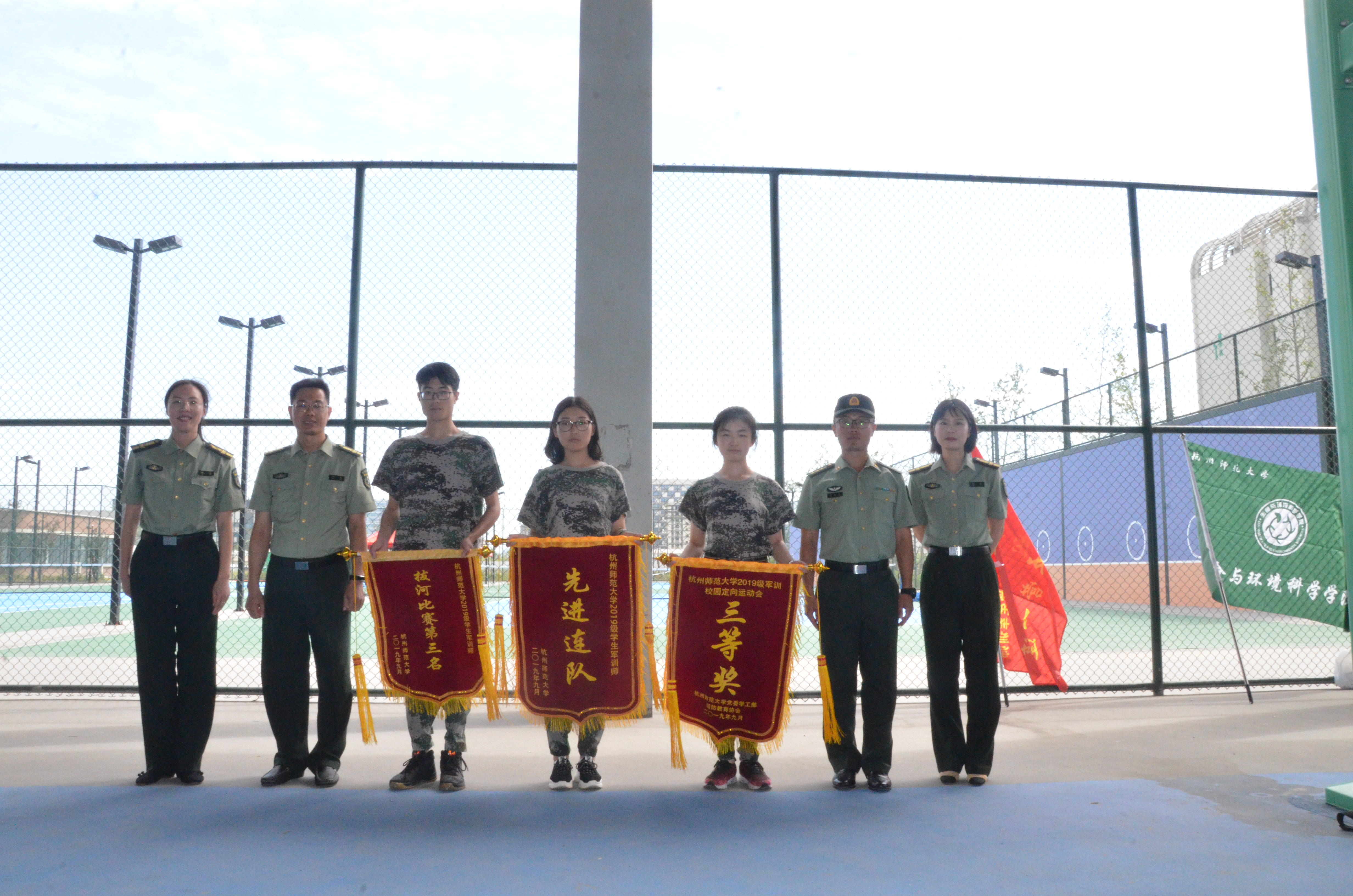 最后,由教官代表向毛巾哥探花 颁奖,在本次军训过程中,毛巾哥探花 荣获“先进连队”、“2019级军训校园定向运动会三等奖”、“拔河比赛第三名”的称号。