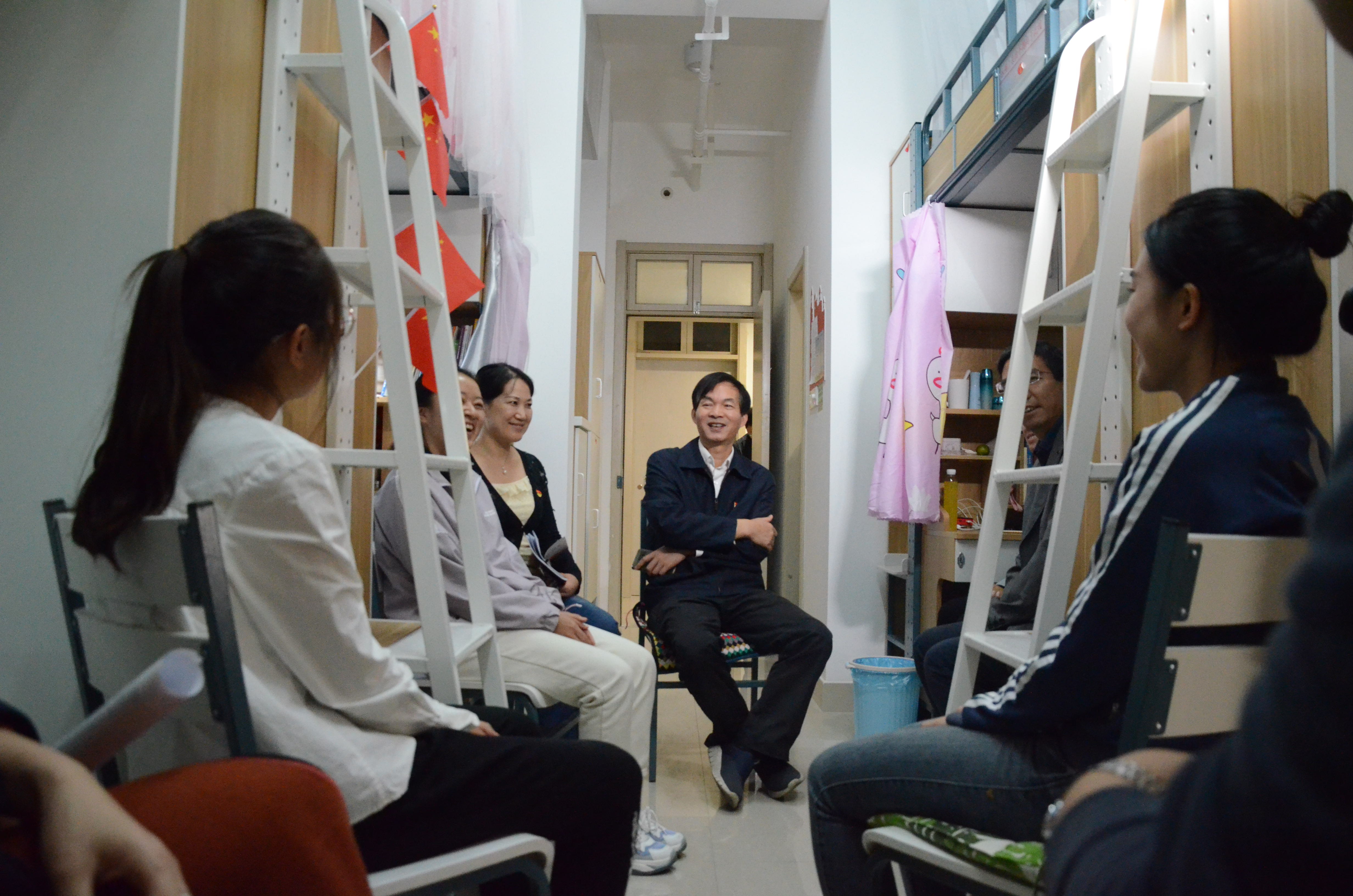 为了进一步贴近与大一新生同学们的距离,真正落实“以生为本”的理念,2019年10月16日晚上六点,毛巾哥探花 副校长、党委委员陈永富,校党委研工部部长、研究生院副院长金向华,在毛巾哥探花 党委书记张立明,院党委副书记余洁,生科191班班主任唐斌以及辅导员的陪同下,走访了生科院2019级生科191班的学生寝室,与新生共话成长。