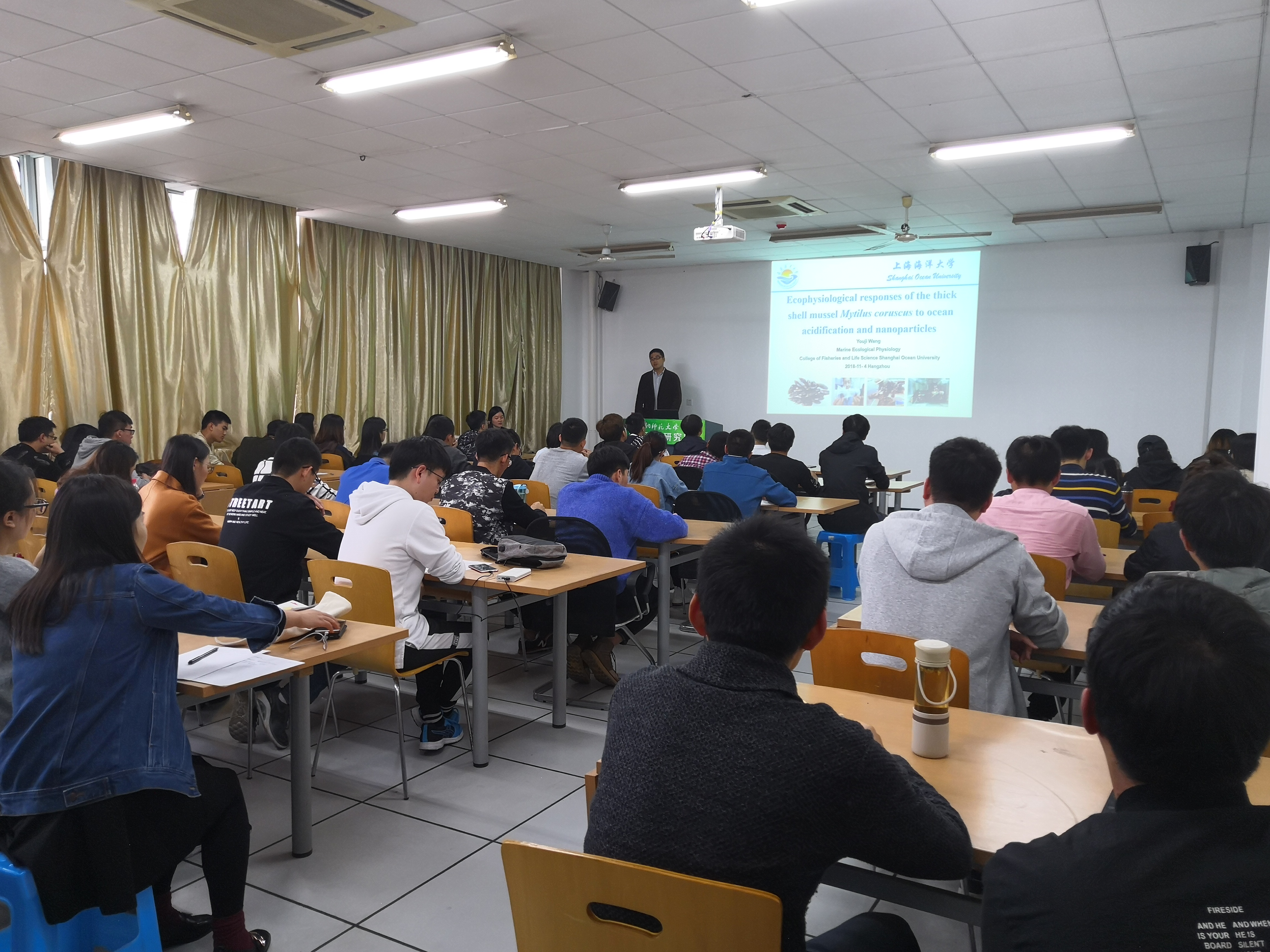 11月5日下午,上海海洋大学王有基教授应邀来我校作了题为“纳米颗粒对贝类的生态毒理效应-典型的模式物种贻贝”的学术报告。生科院学术委员会李春阳主任、张杭君教授、吴玉环教授以及陈慧丽教授等出席了本次座谈会,2018级生科院全体研究生参加了此次会议。