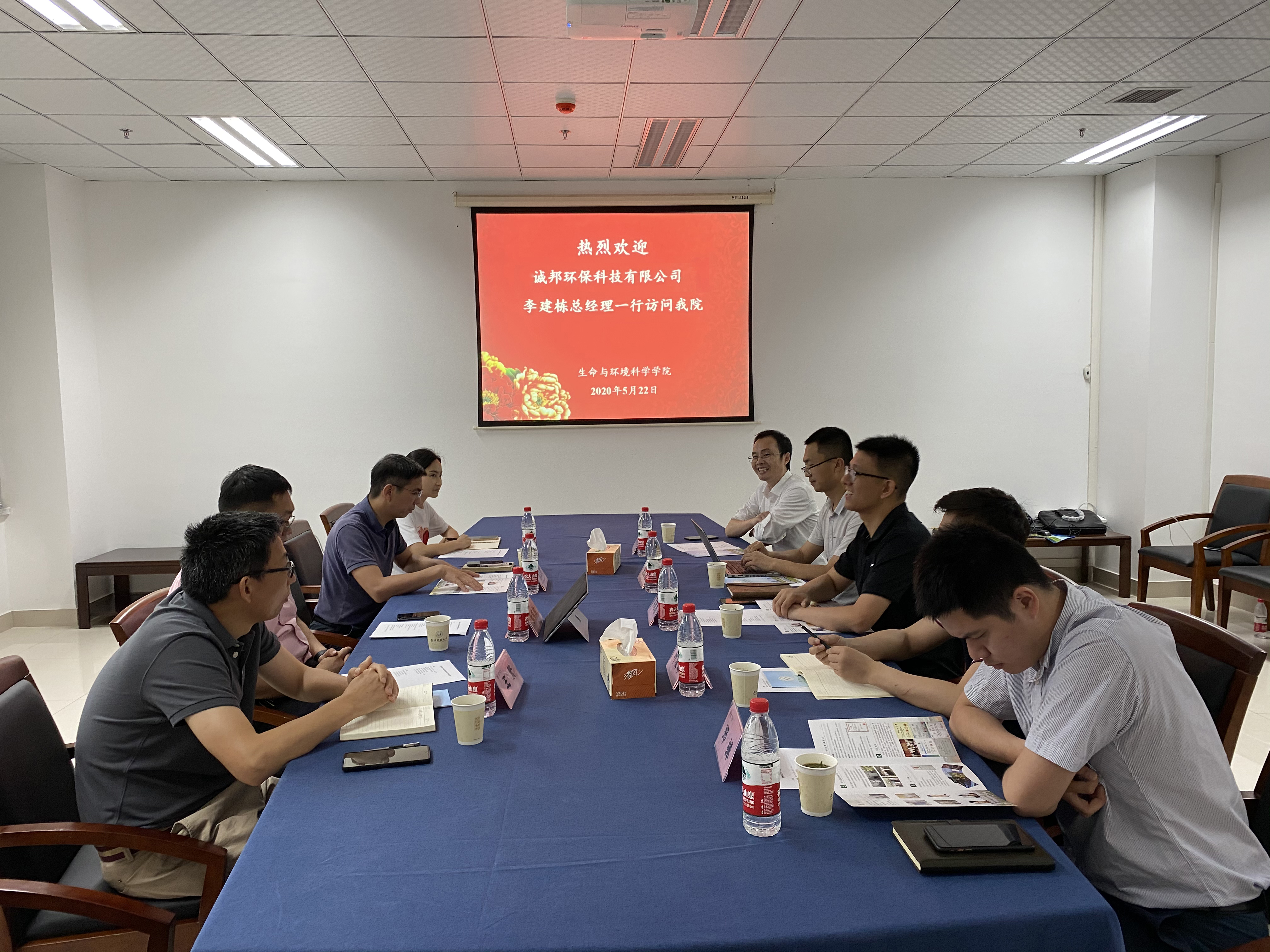 为进一步拓展服务杭州精神,全面开展毛巾哥探花 社会服务工作,深度融合校企合作战略,5月22日下午,诚邦环保科技有限公司李建栋总经理一行来毛巾哥探花 进行交流。执行院长张杭君、党委书记张立明、党委委员王繁等与会。