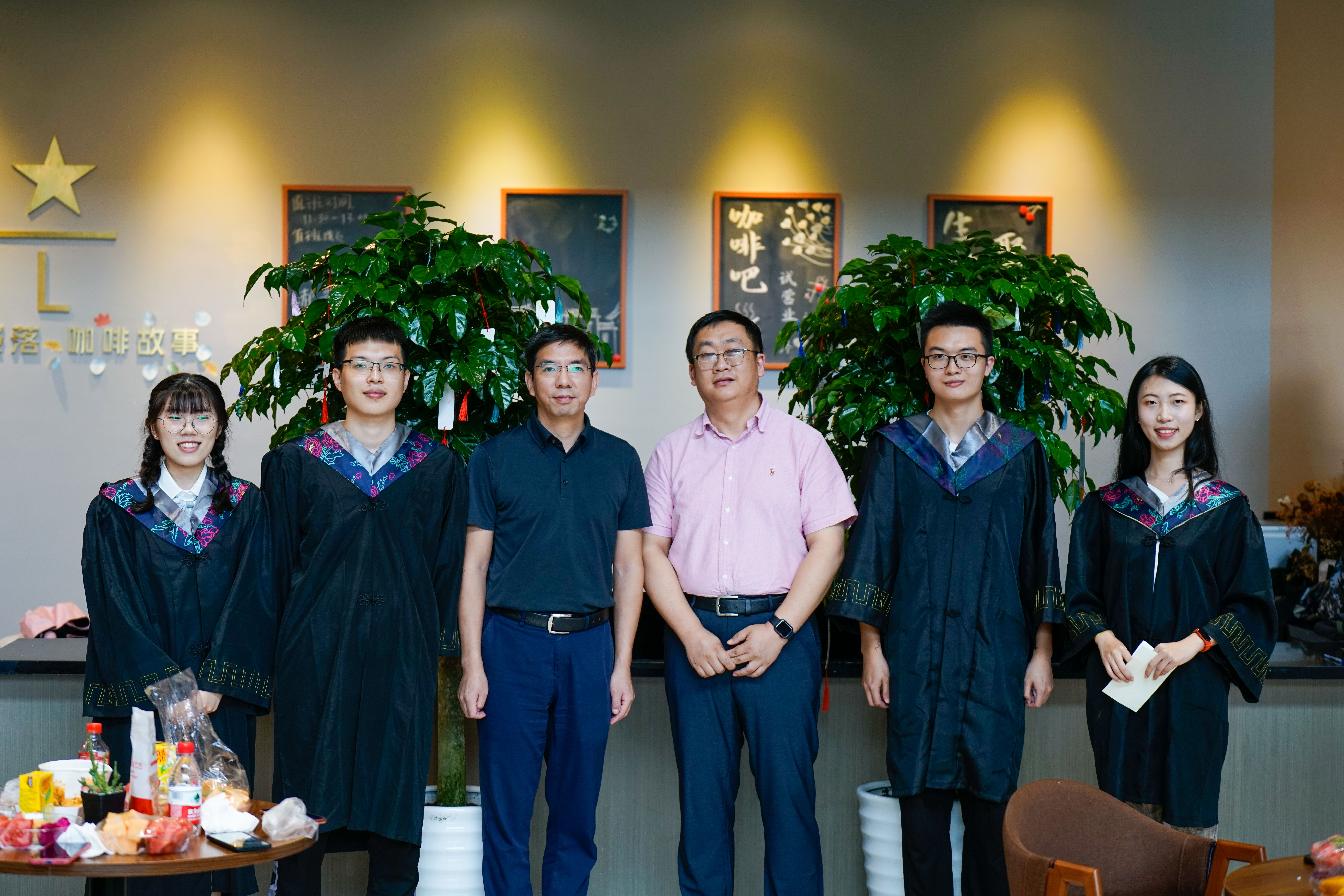 欢送会最后,院长张杭君和党委书记张立明代表学院接受了毕业生赠予的寓意美好祝福——两颗祝福树,并与毕业生代表合影留念。之后,领导们退场休息,老师和同学们共同品尝学院精心准备的美味餐点,开怀畅谈,大家合影留念,共度美好时光。