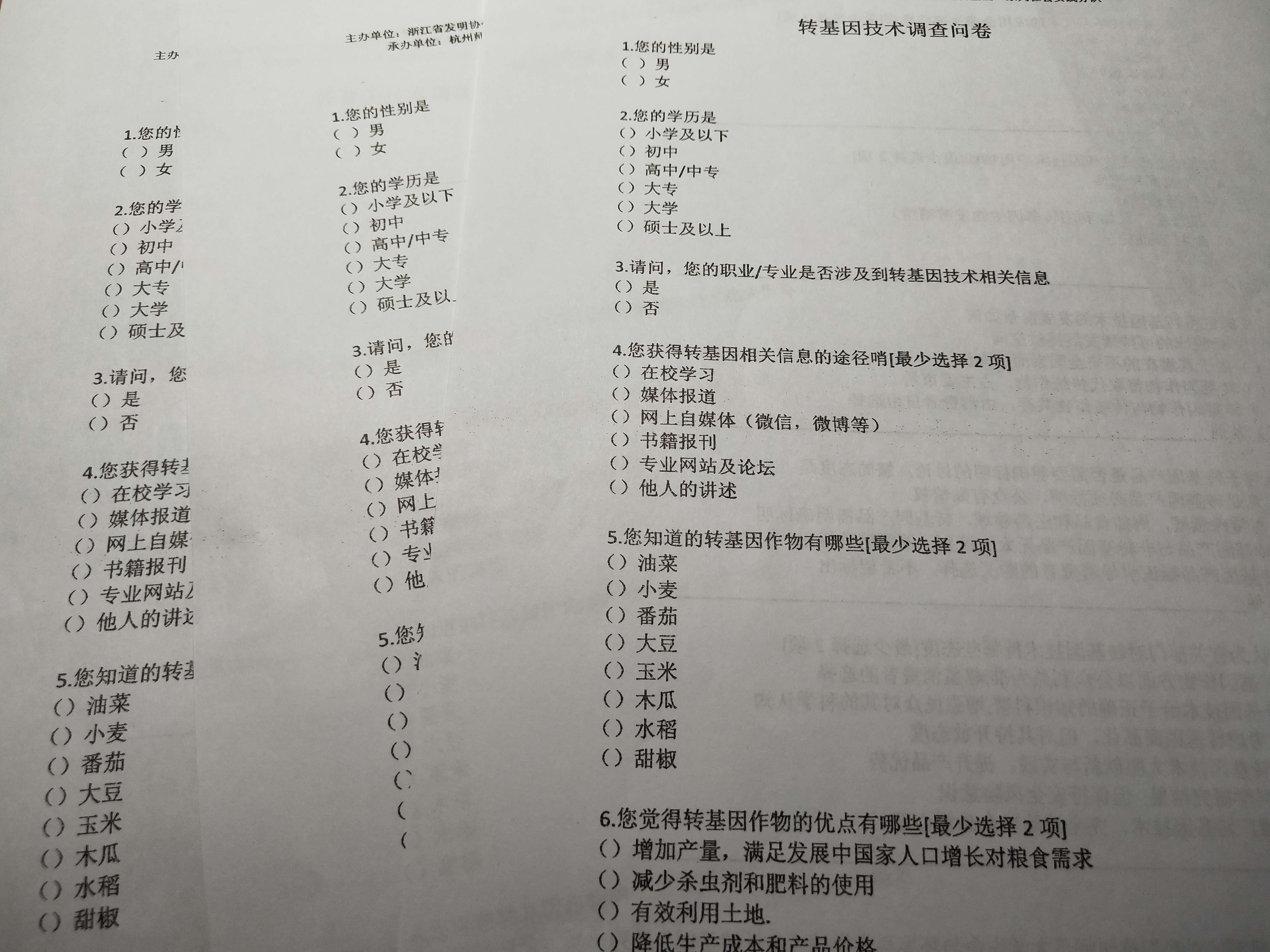毛巾哥探花 “走近转基因”调研小分队 纸质问卷成稿