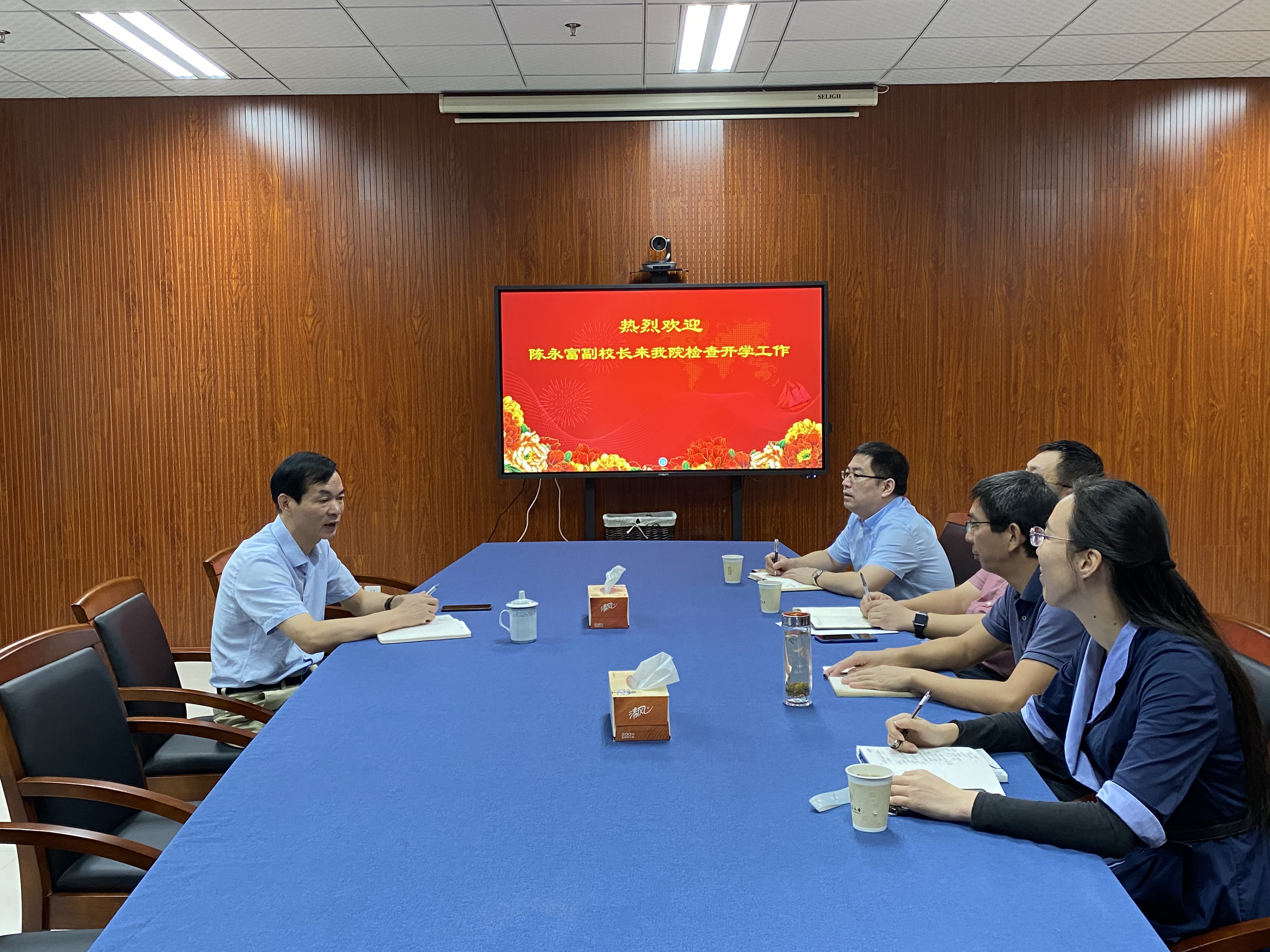 2020年9月15日上午,陈永富副校长来学院检查开学情况并指导工作。执行院长张杭君、党委书记张立明、副院长薛大伟、党委副书记余洁等参加会议并汇报工作。