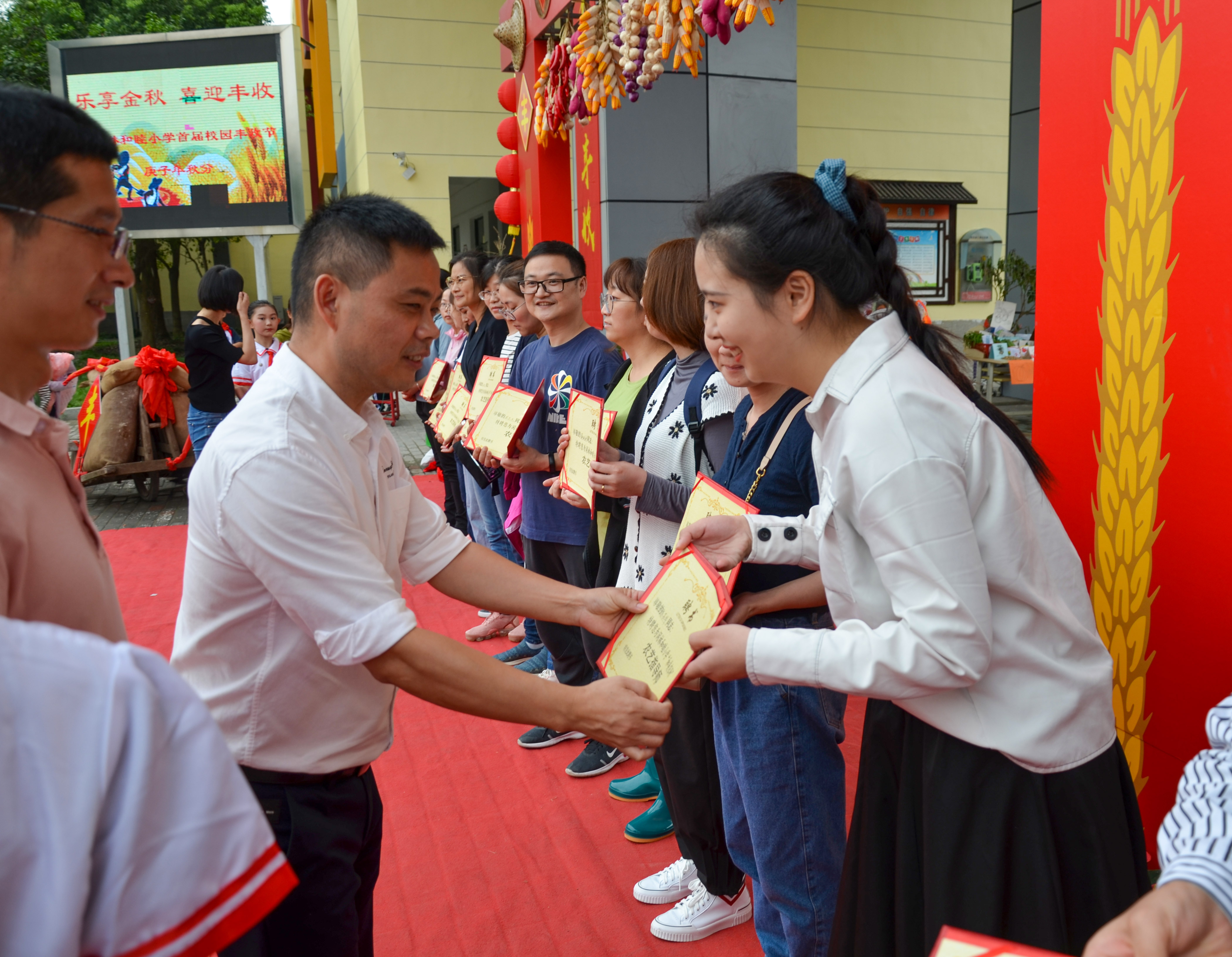 首先,受到小学热烈欢迎,两位代表同学与家长领导、学生一同参与了学校丰收节的开幕活动,观看闲林和睦小学热情洋溢的表演。表演结束后,校领导为生科院的同学颁发了“农艺指导师”的聘书。