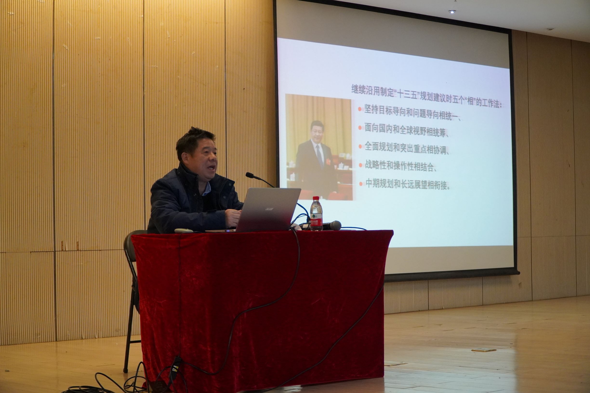 首先,赵春华教授阐述了这次全会是站在“两个一百年”奋斗目标的历史交汇点,擘画发展蓝图、规划实践路径、作出战略部署,为夺取全面建设社会主义现代化国家新胜利注入强大思想和行动力量,说明了第十九届五中全会在历史进程上的重要性和本次讲座的目的。他提到十九届五中全会的精神主要涉及到未来五年乃至未来更长久的十五年到三十年之间,我们国家发展的目标和要求。