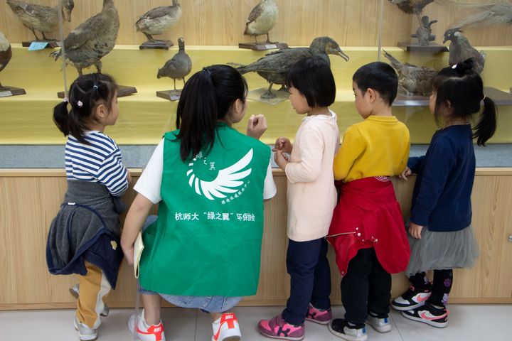 小朋友们一走进15号楼大厅就被庞大的动物标本吸引,志愿者们站在标本旁为他们讲解具体知识,小朋友们也围着标本一圈认真学习着崭新的知识。在大厅内,党委书记张立明与小朋友们亲切互动,并问小朋友们:“小朋友们今天开心吗?有新学到知识吗?”小朋友们异口同声回答:“开心!”紧接着,志愿者们继续带领小朋友们走上三楼一同去探寻标本动物的世界。标本馆内,小朋友们被分为四个组分别由四名志愿者带领着他们认识标本动物,穿走在标本馆里的小朋友们依旧精力充沛,似乎对标本动物们有了更强烈的好奇,他们有的在标本面前驻足痴望,有的不停地问志愿者问题,有的模仿着标本动物的动作。志愿者也与小朋友们相处地更加融洽,在欢乐的气氛中,一个半小时的时间似乎过得飞快。在小朋友们与志愿者约定好下次见面之后,小朋友又排着整齐的队伍回到幼儿园。