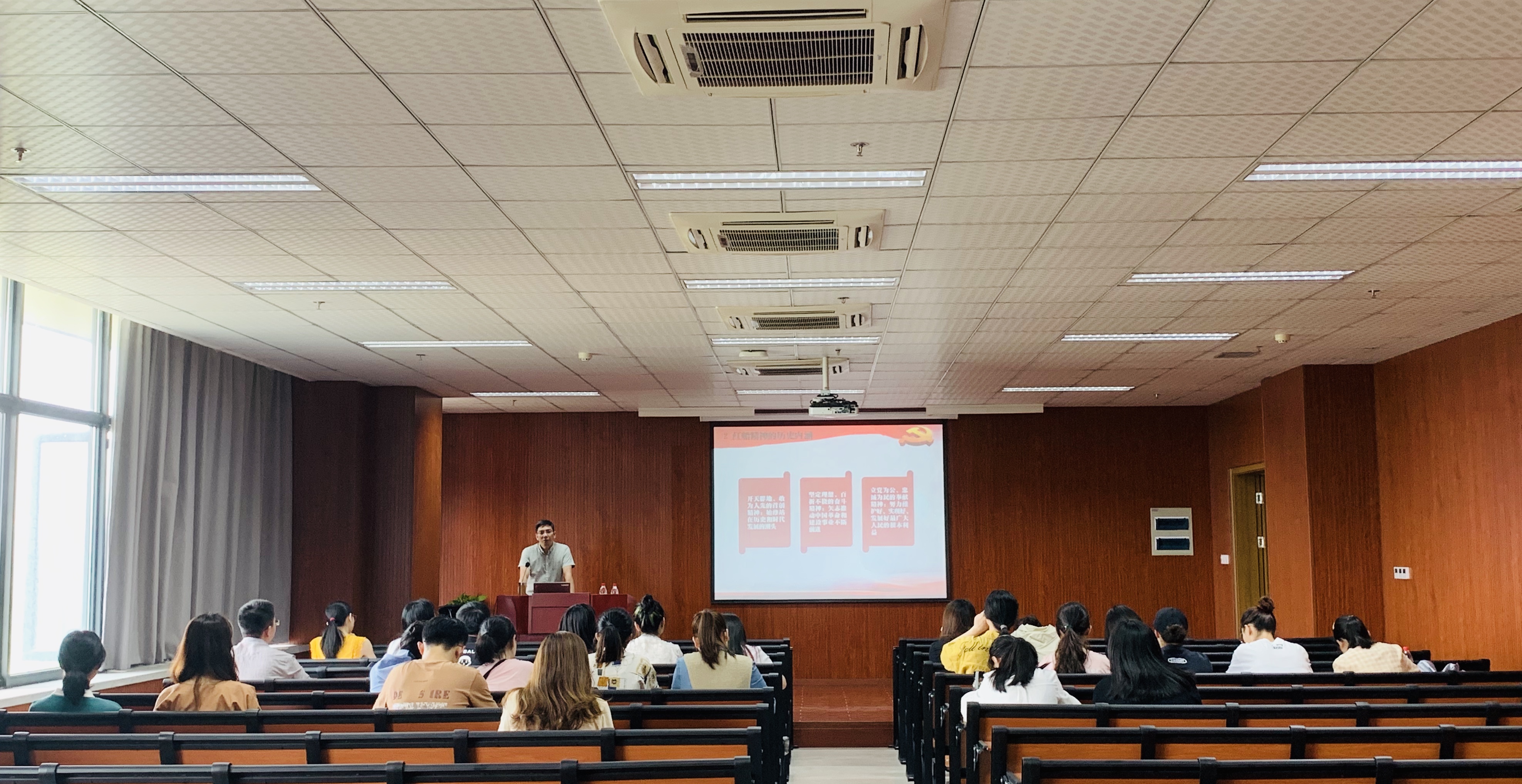 张书记结合中国共产党诞生和发展历程,围绕“坚定理想信念 发挥先锋模范作用”的时代价值主题,从共产党的性质宗旨、红船精神、早期共产党及共产党员、先进共产党员事迹、坚定理想信念、发挥先锋模范作用这六方面深入讲解,带领大家回顾建党历史,使大家明白“红船精神”凝结着中国共产党的建党初心,坚定理想信念是共产党人激励鼓舞我们奋力谱写新时代中国特色社会主义新篇章的动力之源,也让大家更正确认识大学生党员发挥先锋模范作用的重要意义。