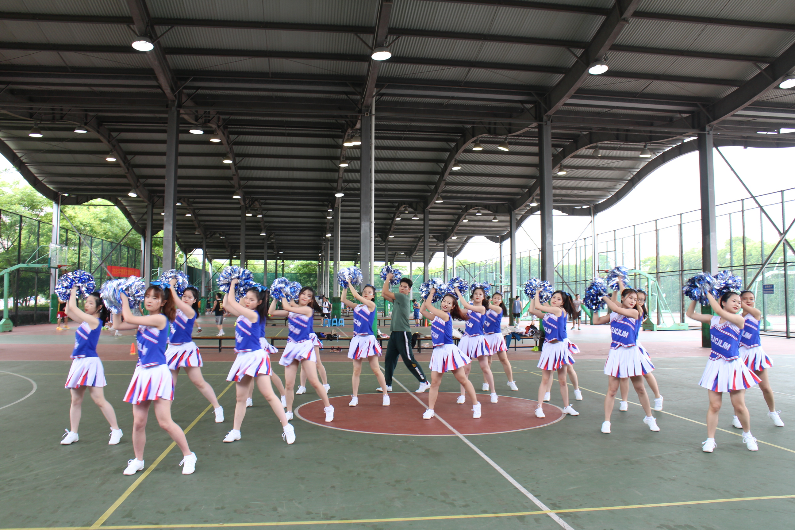 为弘扬团结协作、拼搏向上的体育精神,增强学生体质,丰富校园文化生活 。2021年5月12日,我校在A区风雨篮球场举行了第二十届体育文化节—喜迎建党一百周年“峥嵘杯”啦啦操大赛。