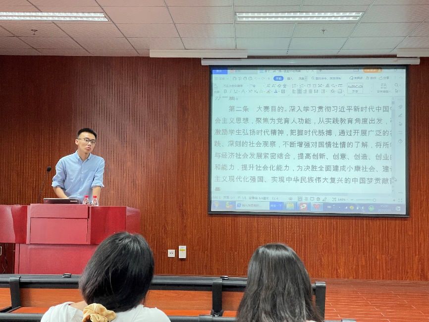 赵起超校友则围绕创新创业竞赛的相关信息展开。他详细地介绍了目前常见的几类创新创业竞赛,如互联网+、大学生创新创业大赛等。结合自身参赛及指导经验,给出合理建议,为同学们答疑解惑,鼓励同学们积极参与相关竞赛,培养自身能力。