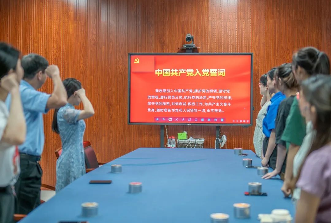 活动中,三位教师党员为新入党学生党员一一送上生日蛋糕,并与他们一起重温入党誓词,进一步坚定理想信念,激发奋斗热情和奉献精神,坚守共产党员的初心与使命。