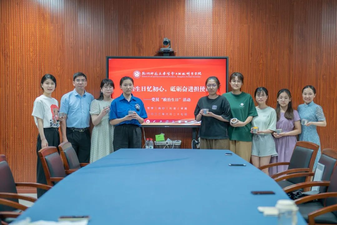 在中国共产党成立101周年之际,为提升新入党党员党性修养,增强其身份意识、责任意识、宗旨意识,6月27日,生科院在慎园为新入党党员同过集体政治生日,学院党委书记张立明、党委副书记王倩、本科生第一党支部书记陈好和新入党的学生党员代表参加。